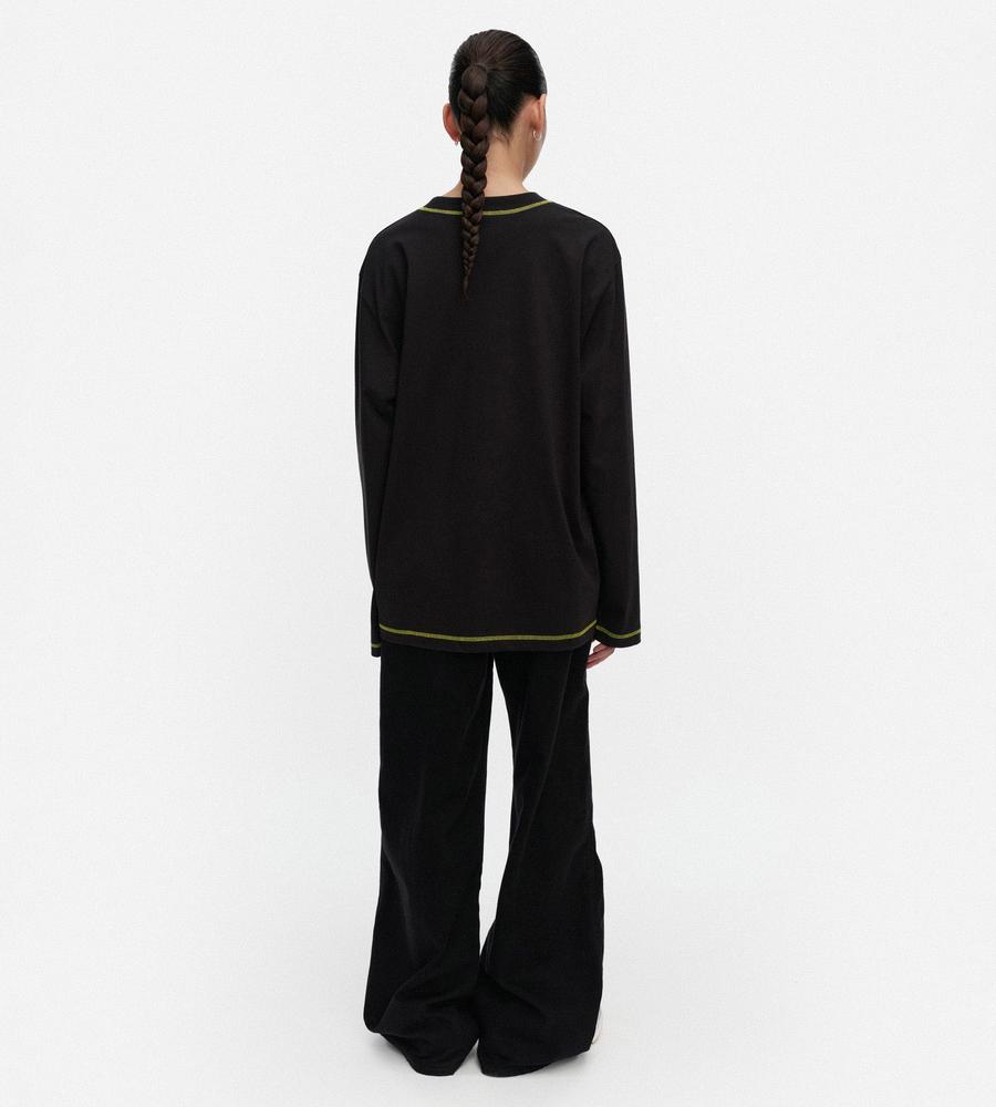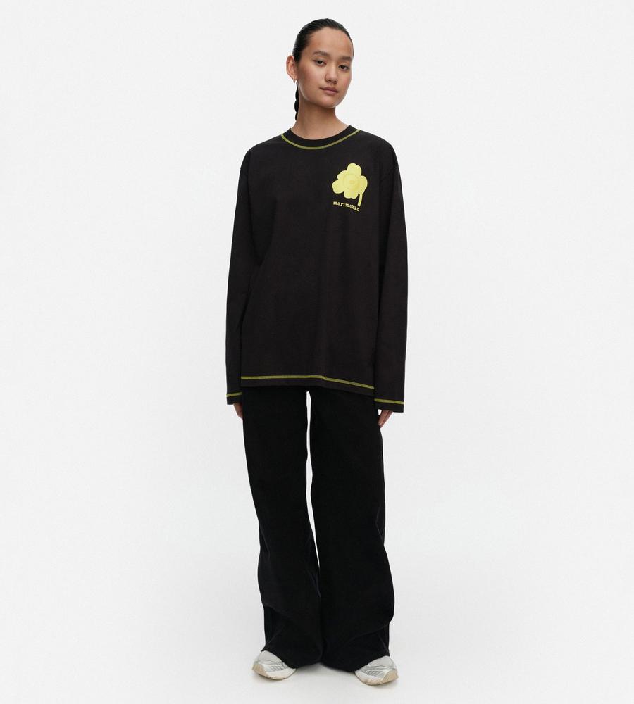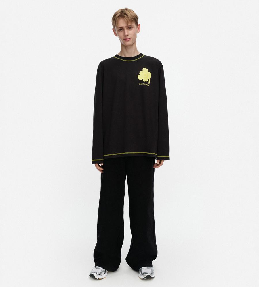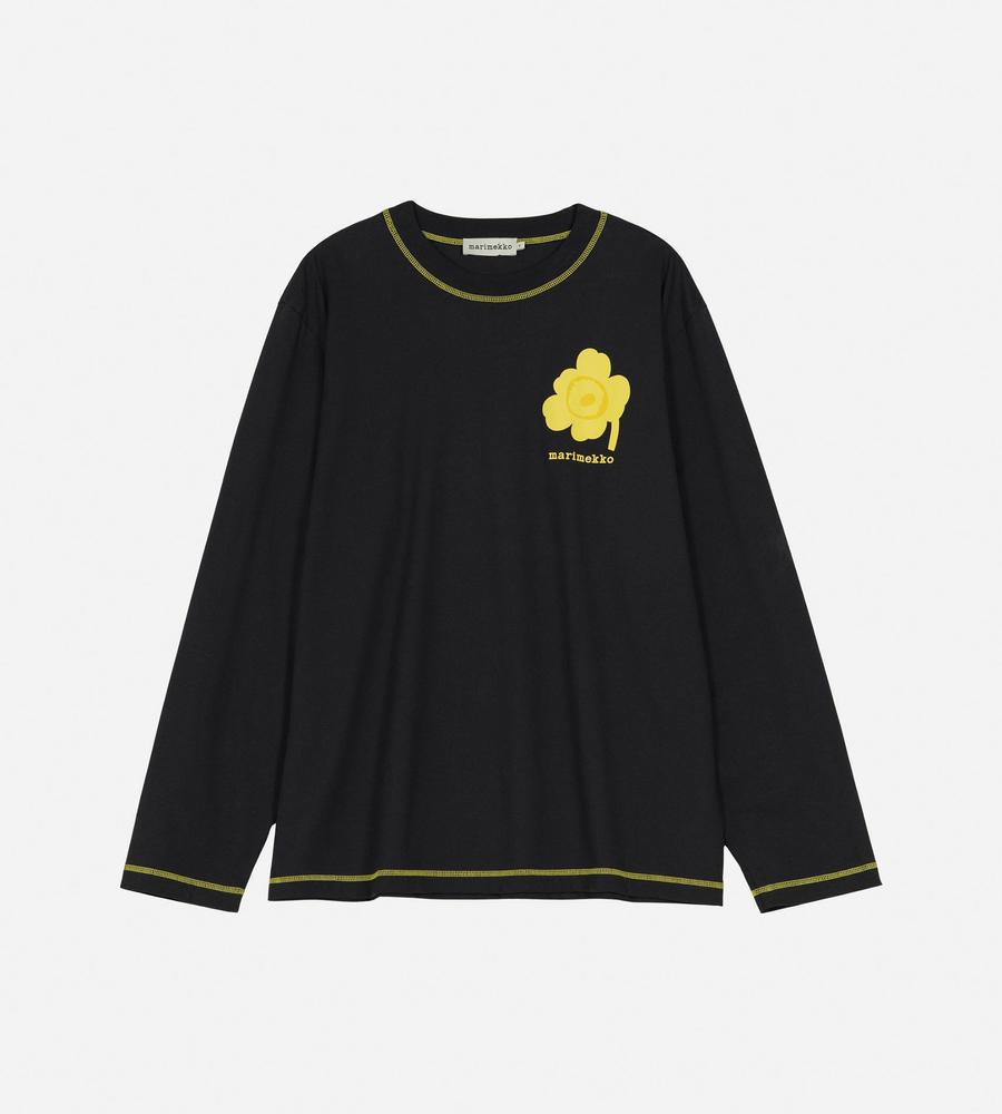 ビビッドなUnikko柄をアクセントに添えたカットソー。適度なゆとりのあるシルエットで、リラックスした着心地に。シンプルなようでしっかり存在感を演出できる一枚です。