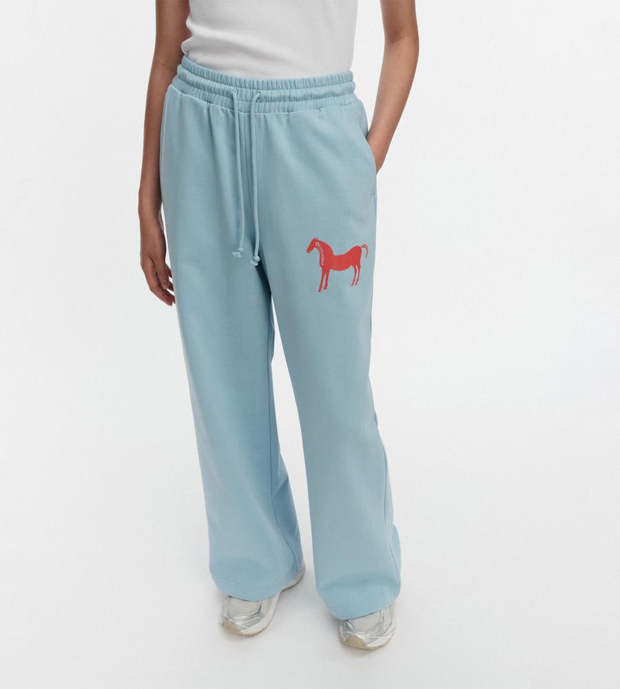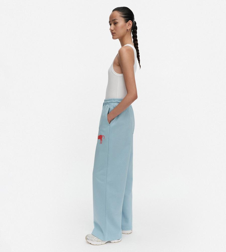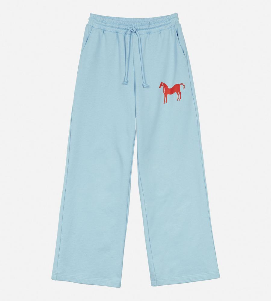 馬のワンポイントや後ろのロゴでエッジを効かせたスウェットパンツ。きれいなカラーも相まって、とびきりチャーミングなカジュアルスタイルを楽しめます。ゆとりのあるシルエットで穿き心地が良いのも魅力的。