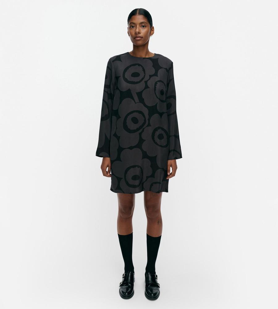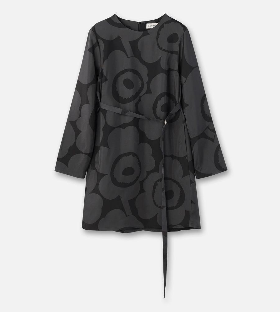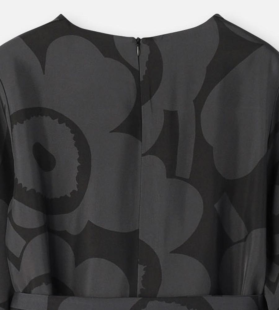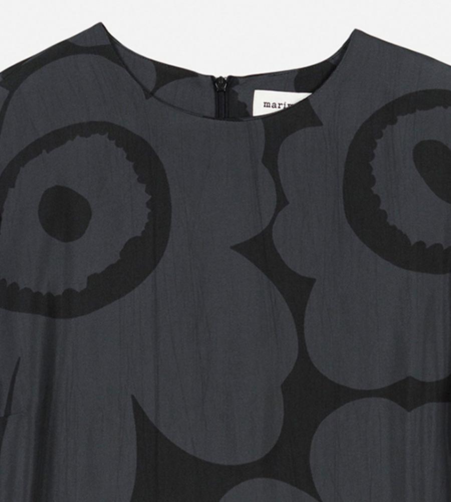 Marimekkoの代表柄、 Unikko(ウニッコ)で仕上げたワンピースです。クシュっとわざとシワを寄せた素材がこなれ感たっぷり、気取らない大人カジュアルな着こなしをかなえてくれます。膝がのぞくミニ丈なので、パンツやスパッツなど手持ちのボトムスとのレイヤードスタイルもおすすめです。