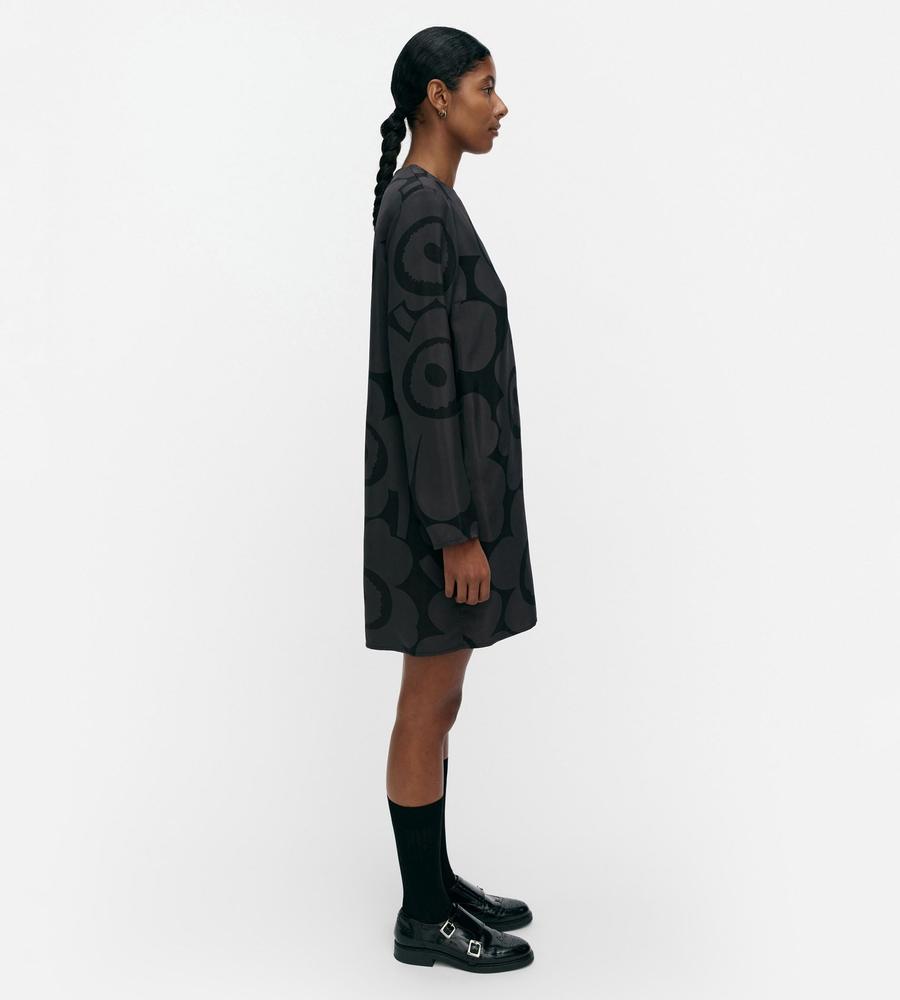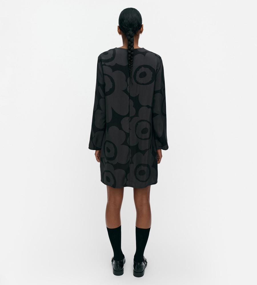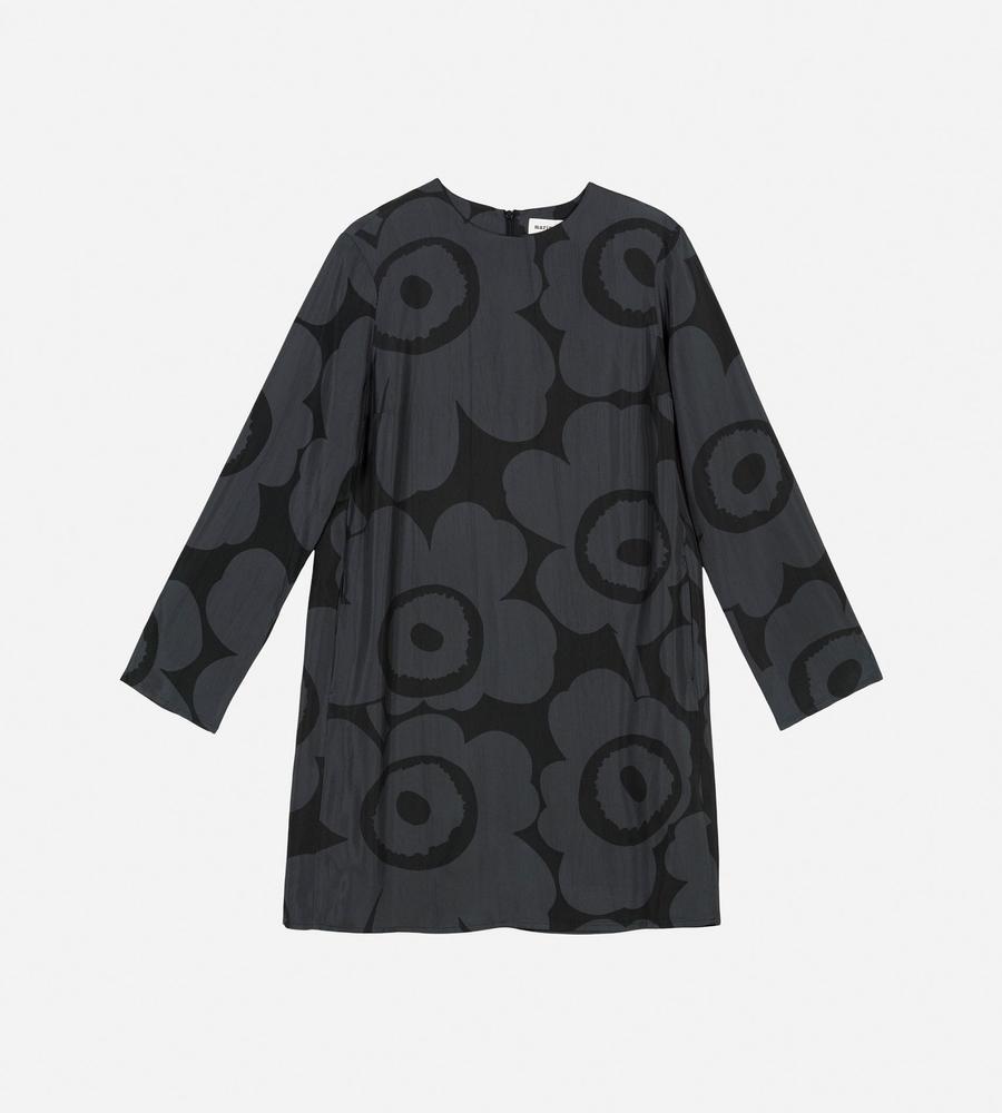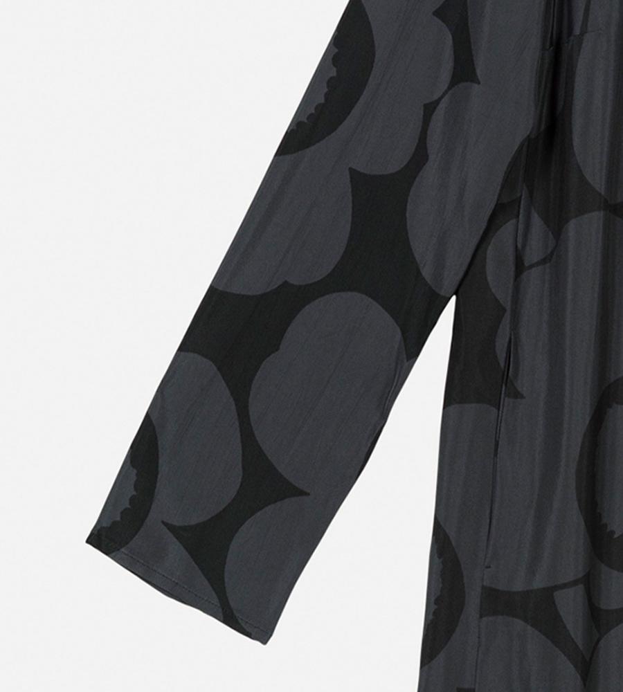 Marimekkoの代表柄、 Unikko(ウニッコ)で仕上げたワンピースです。クシュっとわざとシワを寄せた素材がこなれ感たっぷり、気取らない大人カジュアルな着こなしをかなえてくれます。膝がのぞくミニ丈なので、パンツやスパッツなど手持ちのボトムスとのレイヤードスタイルもおすすめです。
