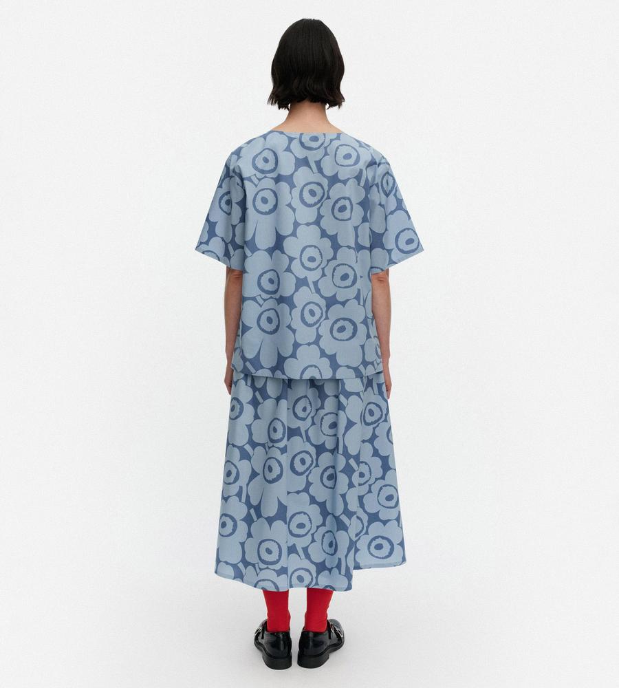 一枚で着映えするUnikko柄のブラウス。落ち感のあるAラインのシルエットで、リラックスムードの装いに。Tシャツのようにレイヤードのインにも使いやすいのが魅力です。
