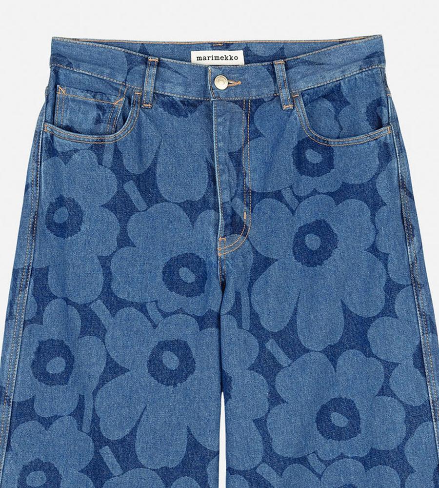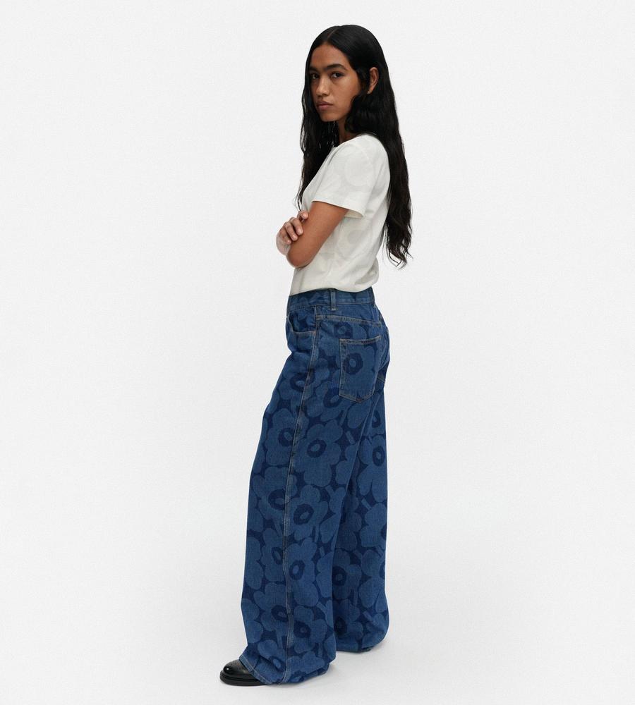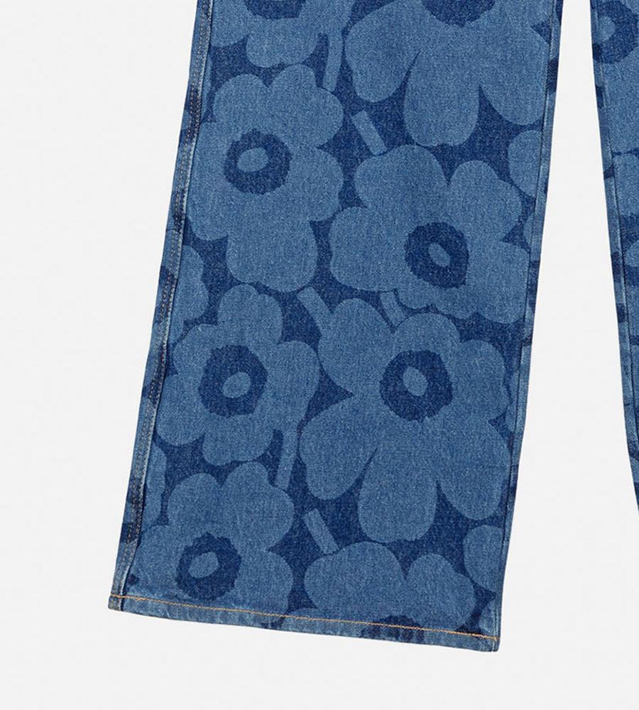 いつもの着こなしがぐっとチャーミングに一新するUnikko柄デニムパンツ。ゆとりのあるストレートシルエットで、抜け感のある着こなしに。シンプルなトップスと合わせて、パンツの個性を引き立たせるのもおすすめです。