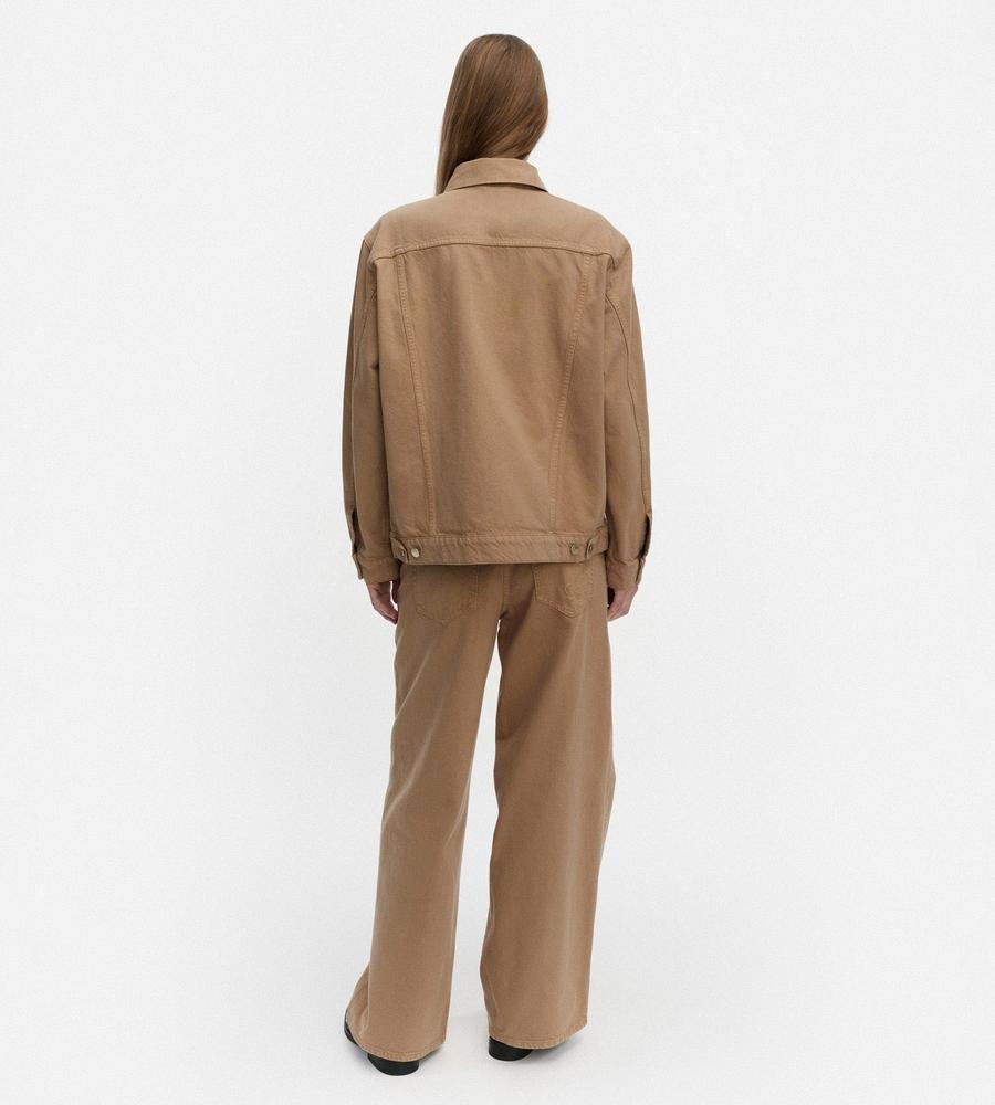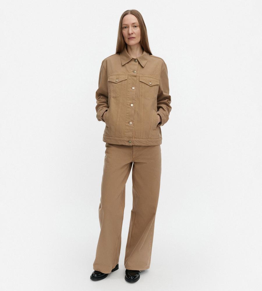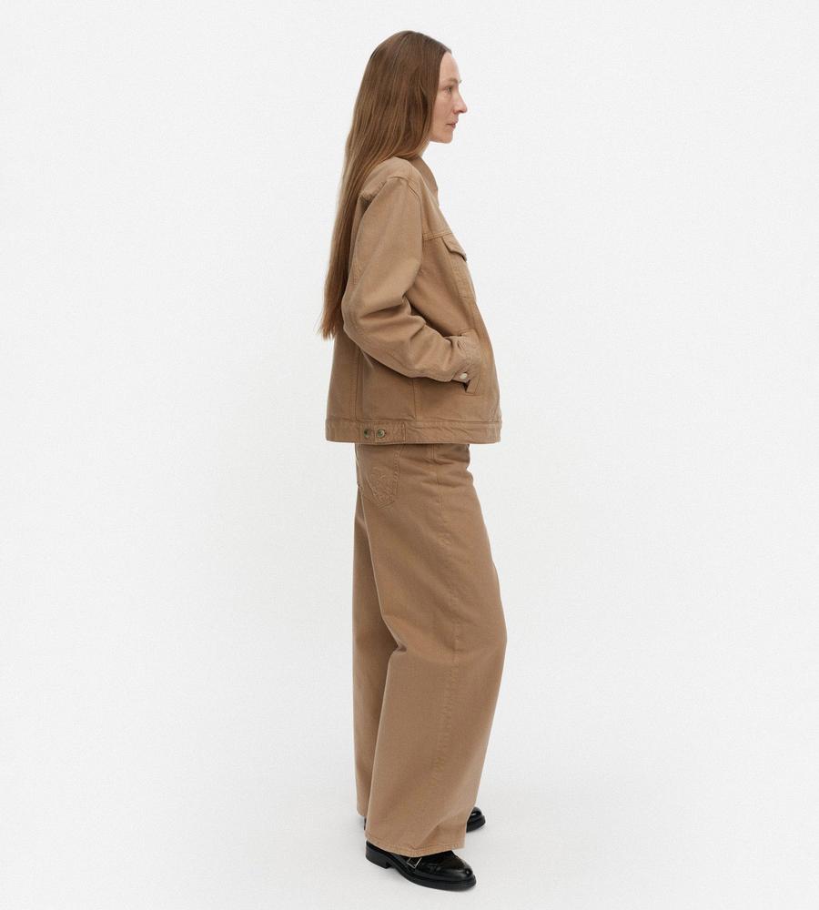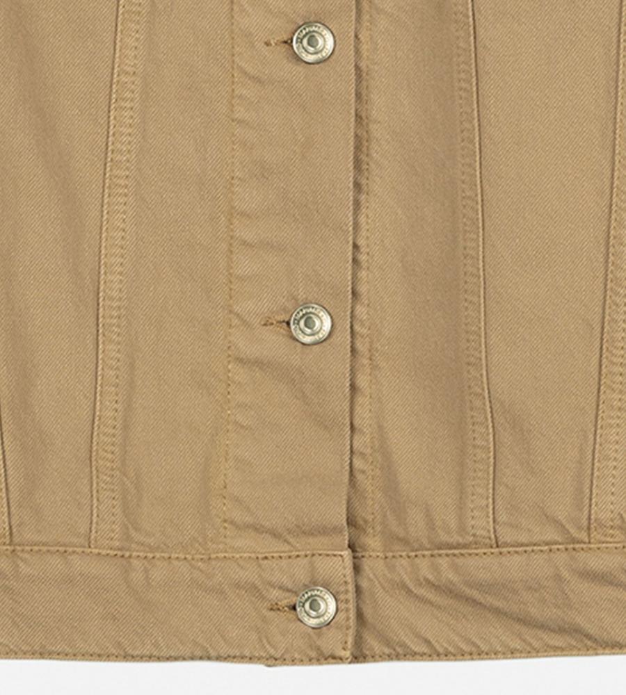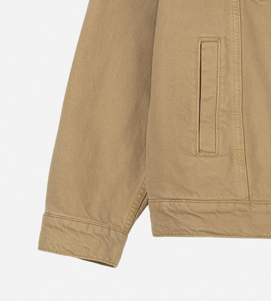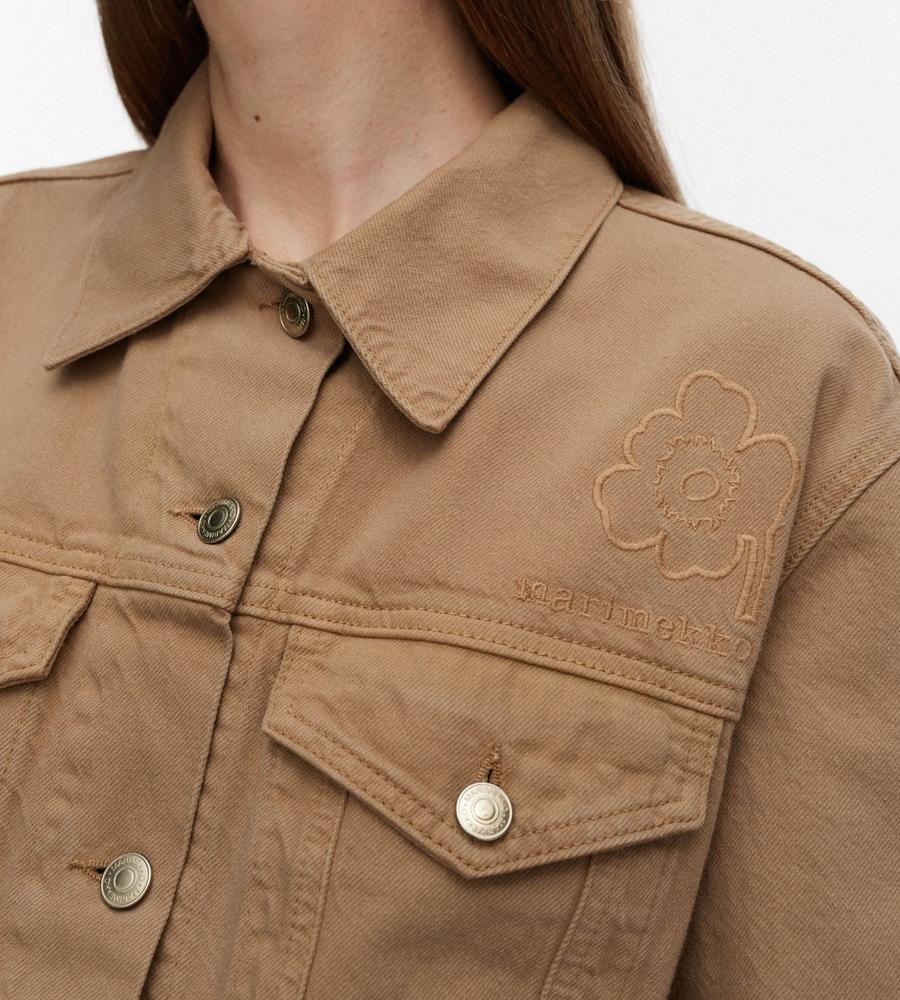 クールに着こなしたい衿つきジャケット。肩下の刺しゅうとブランドロゴが、さりげないアクセントに。気軽に羽織れる腰丈で、ロングシーズン活躍するのもポイントです。