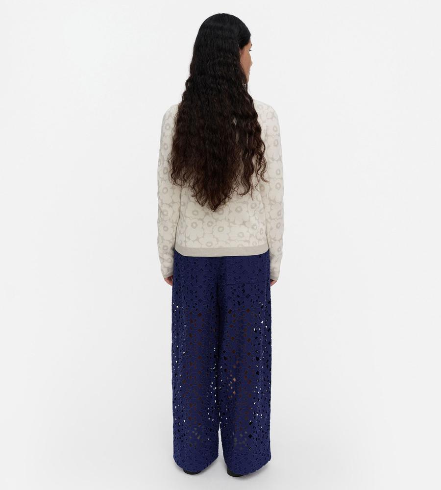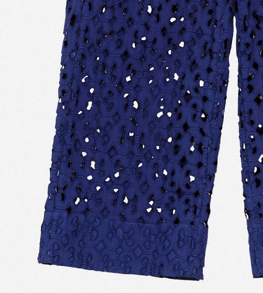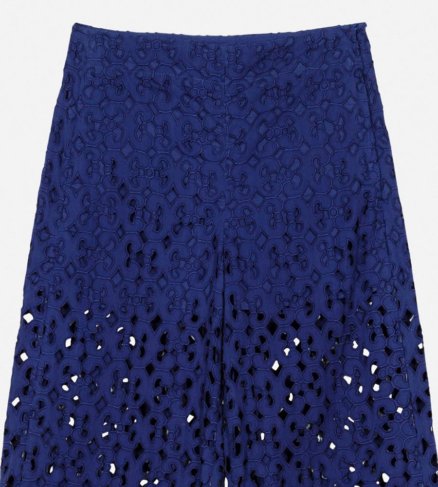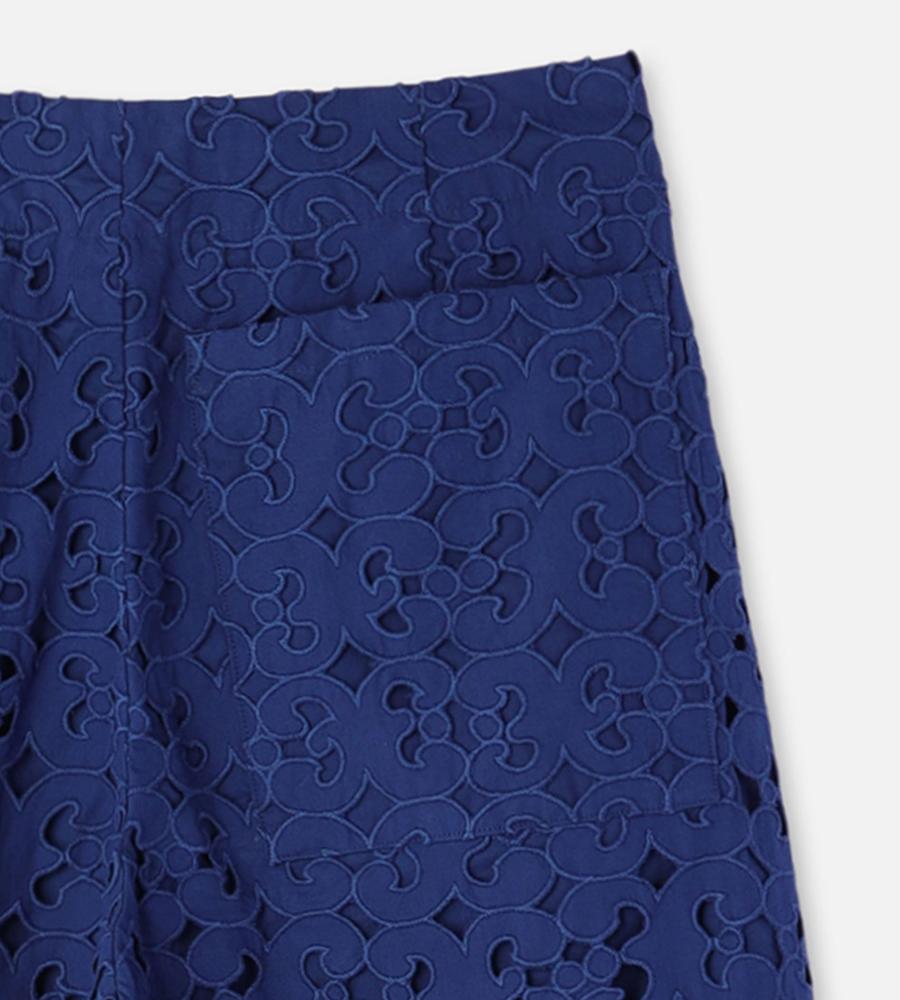 Keidasパターンを透かしデザインで表現したパンツです。裏地が半分付いており、軽やかなデザインに仕上がっています。サイドファスナー仕様、バックにはパッチポケットを1つ配置。コットン100%素材を採用しており、シーズンムード漂う旬のボトムスとして活躍するアイテムです。
