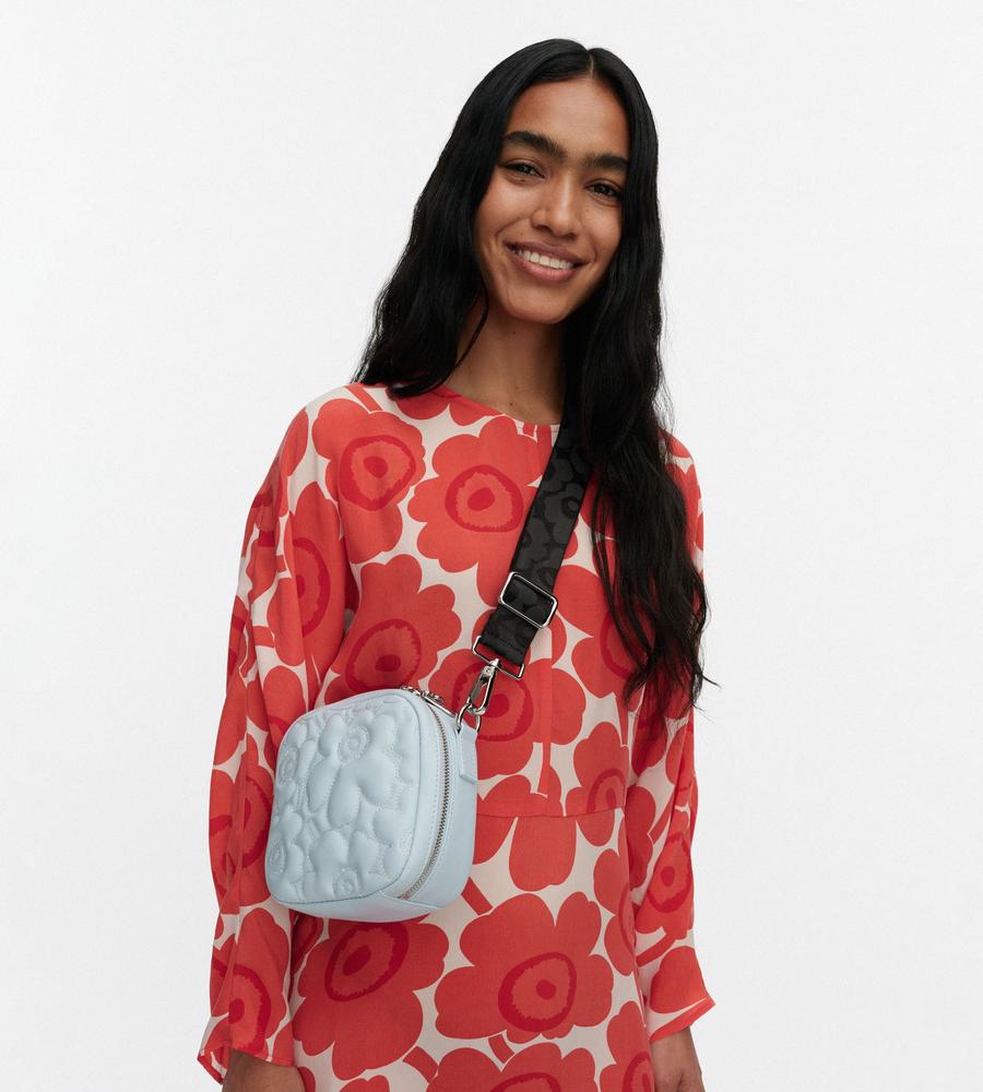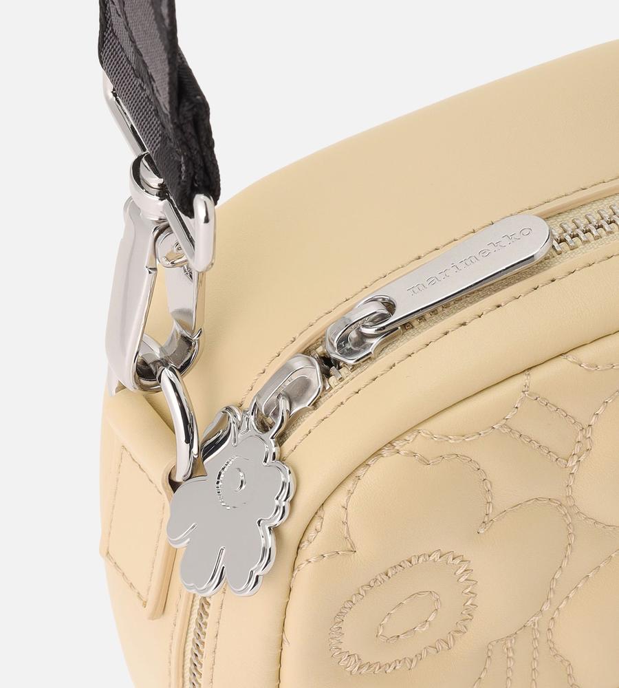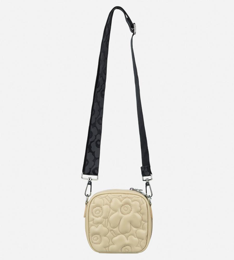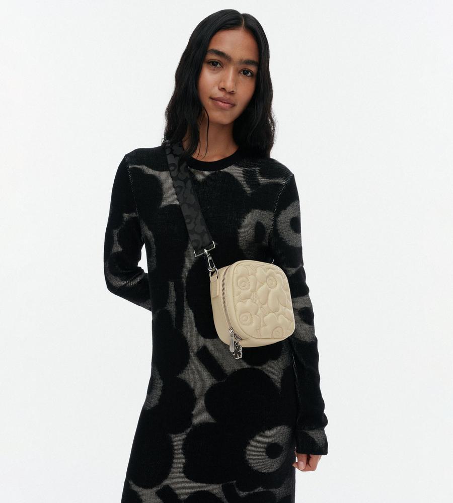 Marimekkoの人気プリント柄、 Unikko(ウニッコ)で仕上げたショルダーバッグです。ステッチでデザインされたUnikko柄の凹凸感がポイント、他にはないデザインでコーデのアクセントにぴったり。毎日のお出掛けから旅行など、幅広いシーンでお使いいただけるサイズ感も魅力です。