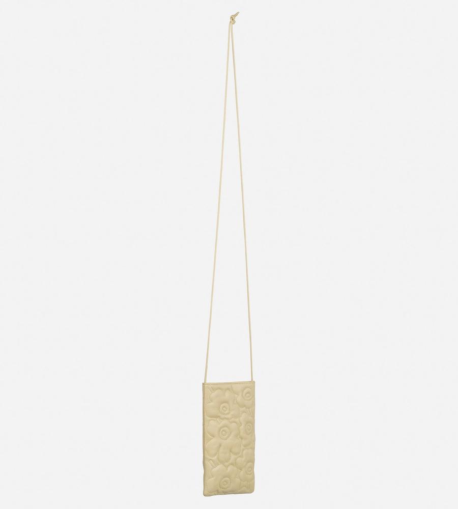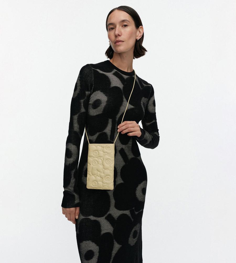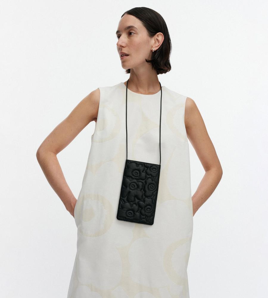 Marimekkoの人気プリント柄、 Unikko(ウニッコ)で仕上げたショルダーバッグです。ステッチでデザインされたUnikko柄の凹凸感がポイント、スマートフォンがぴったり収まるサイズで、スマホケースとしてもお使いいただけます。自分用はもちろんプレゼントにもおすすめのアイテムです。
