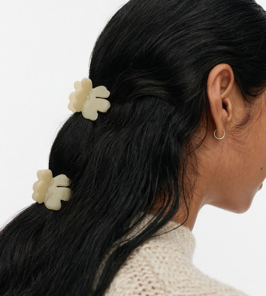 柔らかなカラーのUnikko柄が上品なヘアクリップ2個セット。さりげない可愛さを演出でき、デイリーのヘアアレンジに活躍します。