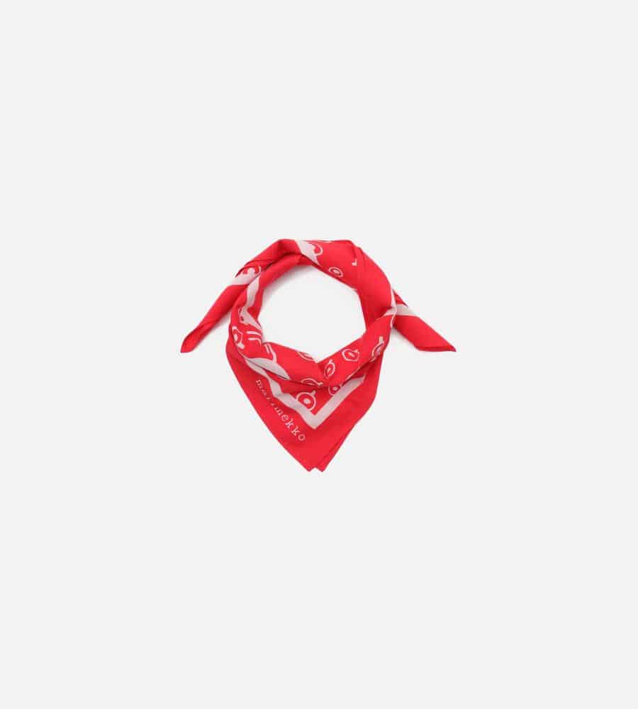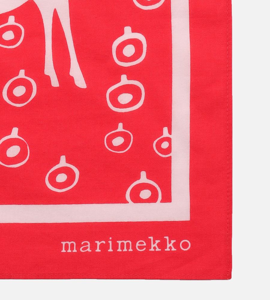 Maija Isolaがデザインを担当した、「黒い牝馬」を意味する「Musta tamma(ムスタ タンマ)」柄の正方形スカーフ。ブランドロゴもポイントになっています。シンプルなTシャツやブラウスの襟元に巻くのはもちろん、バッグのハンドルに巻き付けたりポケットチーフとして活用いただくのもおすすめ。