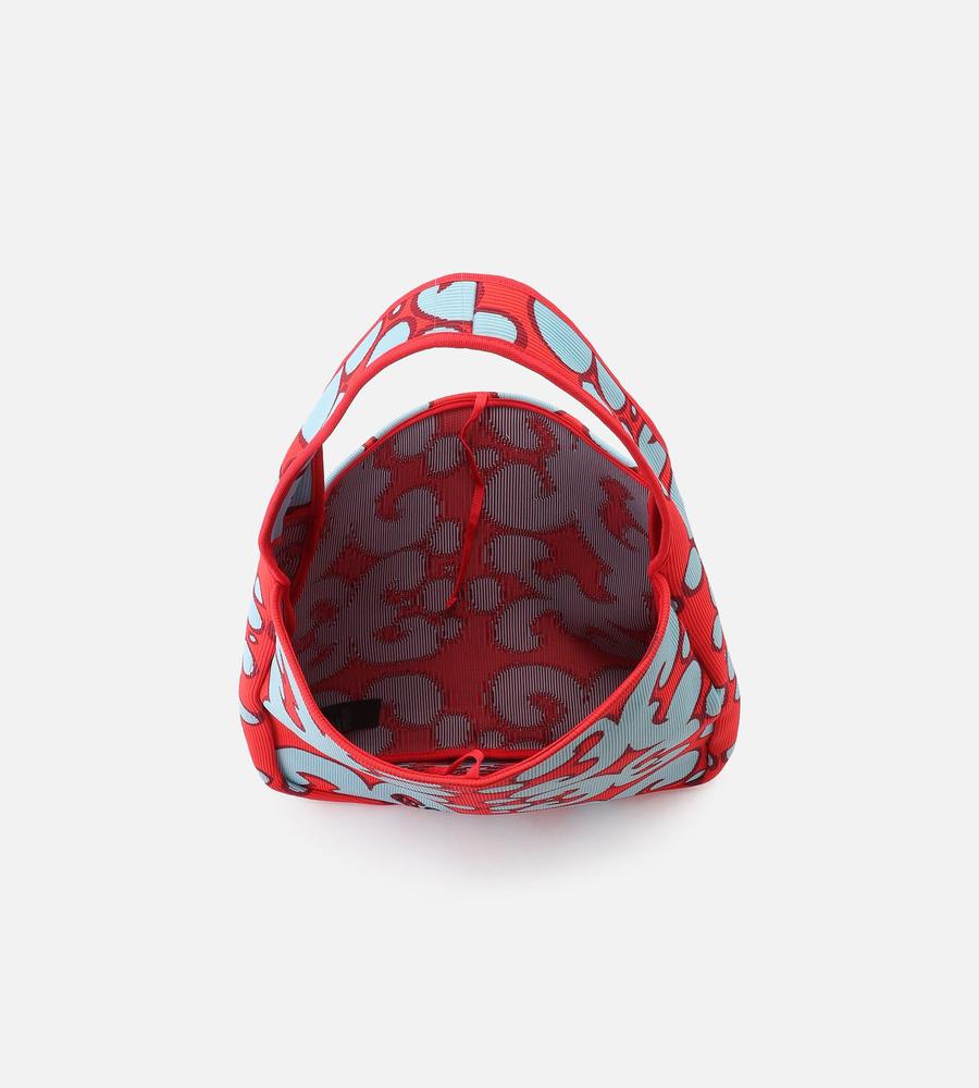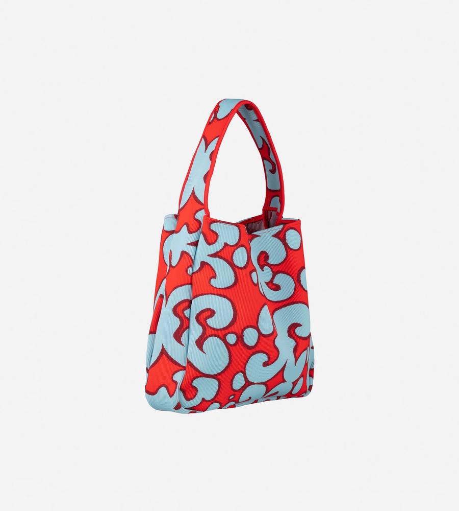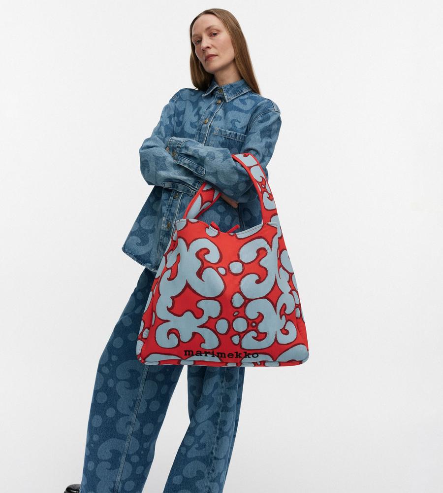 アーティスティックなムードのあるKeidas柄が印象的なリブ編みのショルダーバッグ。フロントにはブランドロゴの刺繍がデザインアクセント。様々なお出かけスタイルにマッチする、マチ付きのたっぷりとしたサイズ感も魅力。コーディネートにスタイリッシュなアクセントを与えてくれるアイテムです。