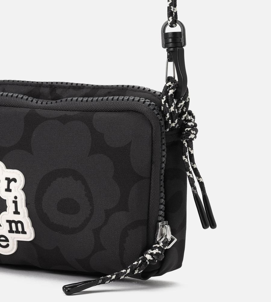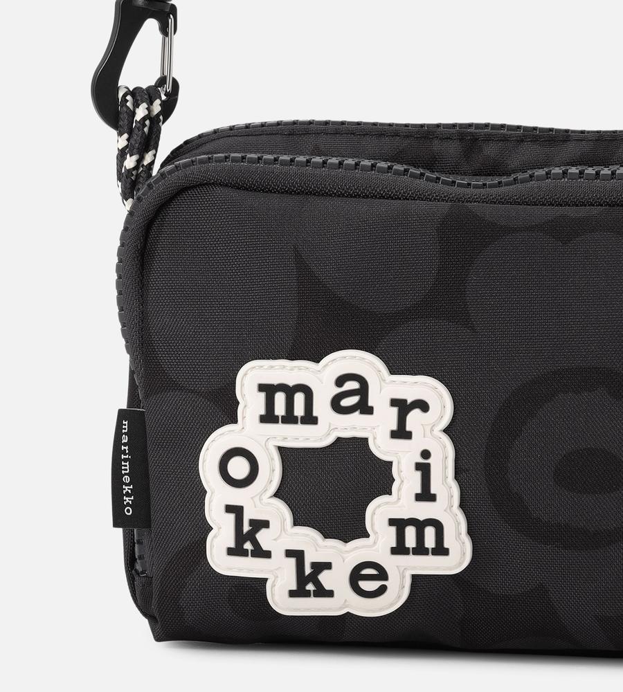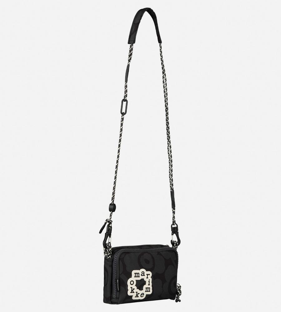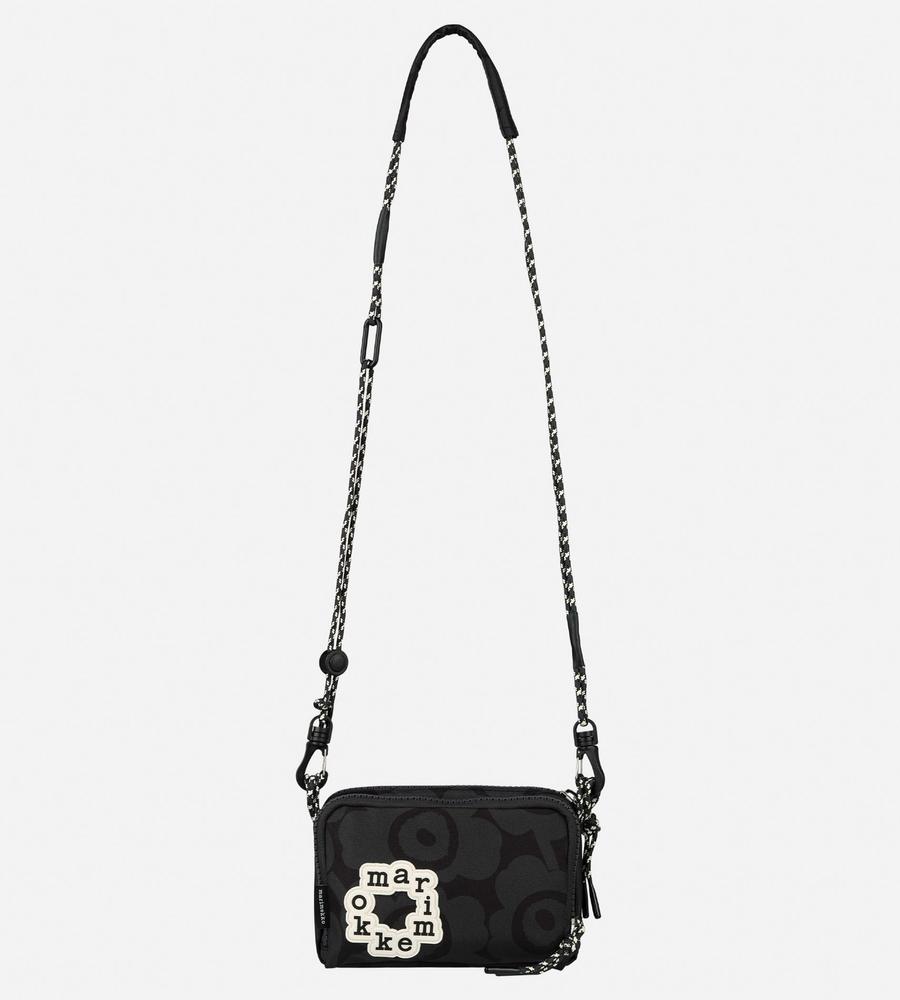 Marimekkoを代表するUnikko柄のショルダーバッグ。サークル型のブランドロゴがスタイリッシュなデザインポイント。ショルダーストラップは、着こなしに合わせて斜めがけにしたりと長さ調整可能。コンパクトなフォルムながら、2つのジップ付きポケットで使い勝手抜群なアイテムです。