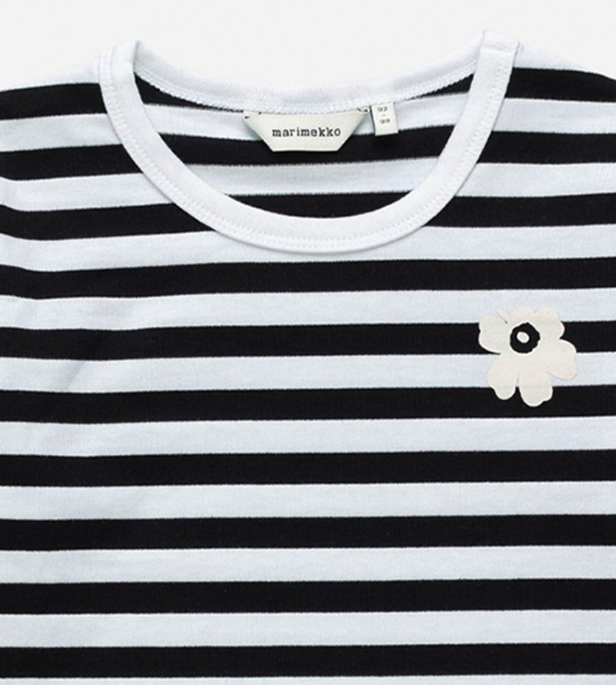 MarimekkoからVinde Tasaraita Unikkoの長袖カットソーが登場です。お肌の敏感なキッズも安心なコットン100%素材で仕上げました。ジェンダーレスなストライプ柄であわせるアイテムを選ばないのもポイント、自分のお子様にはもちろんギフトにもおすすめのアイテムです。