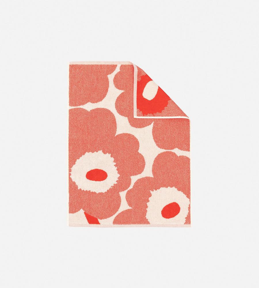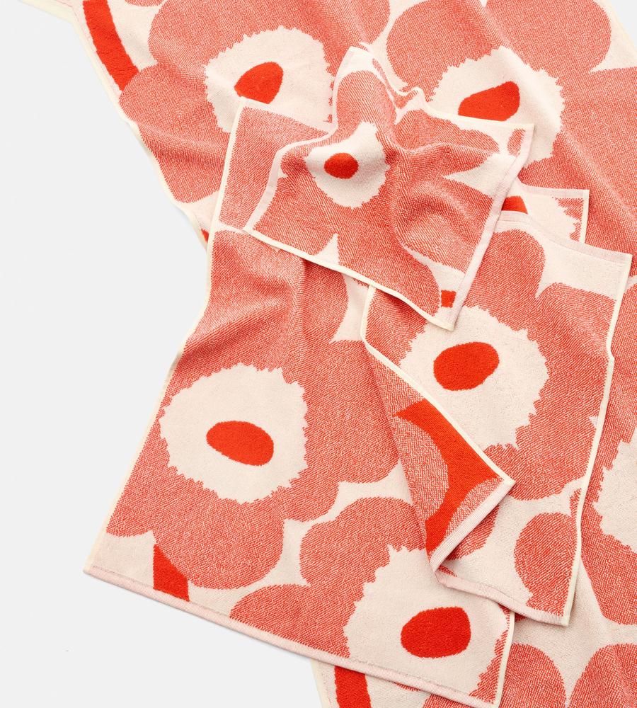 Unikko柄を全面に配した華やかなフェイスタオル。目にするたび使うたびに、ハッピームードを呼び込んでくれそう。あらゆる用途に使いやすいサイズ感も魅力です。