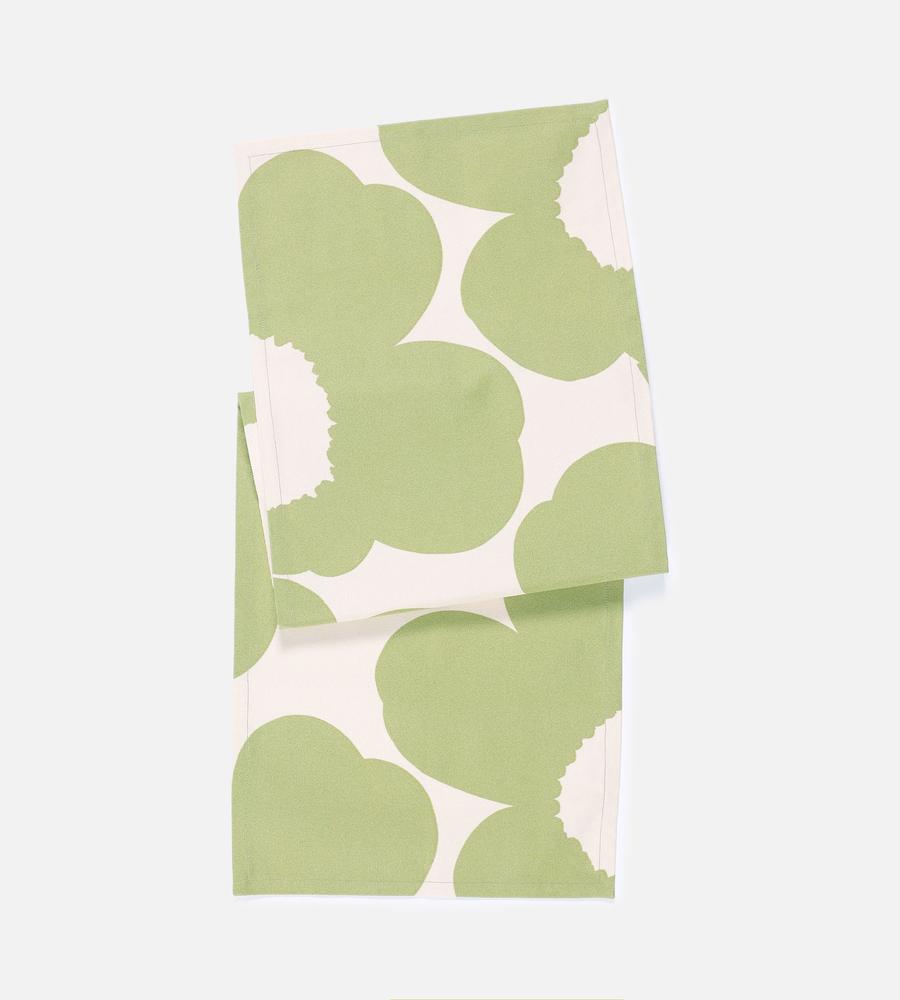 どんなテーブルにも合わせやすい、グリーンのUnikko柄テーブルランナー。日常使いはもちろん、パーティーなど特別な日の盛り上げ役にもおすすめのアイテムです。