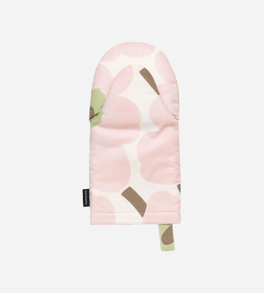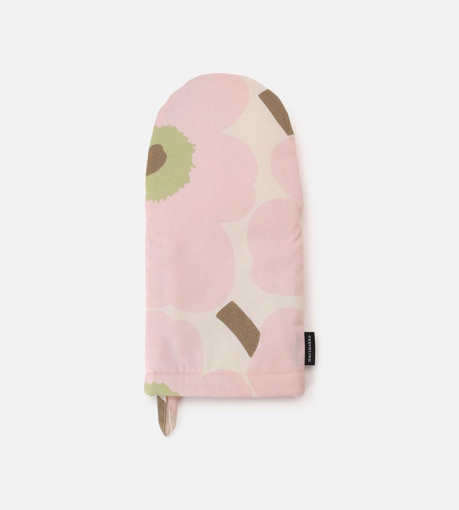 Marimekkoの人気シリーズ、Pieni Unikko(ピエニウニッコ)からミトンの登場です。ピンク×ホワイトを基調としたデザインで、実用性はもちろん掛けておくだけでキッチンが明るく華やぎます。同じシリーズのアイテムとセットでそろえるのもおすすめ、家族や友人へのプレゼントにもぴったりです。