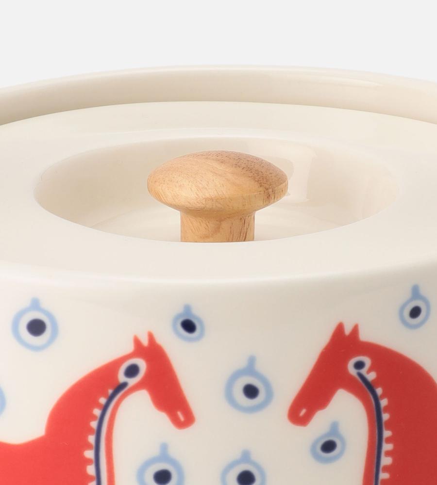 2026年の新年を、干支の午とともに祝う縁起の良いティーポット。木目のディテールなどに和のエッセンスがほんのり感じられ、日本茶をいただくときにも、ゲストへお茶を振る舞うときにもおすすめの一品です。ビビッドな馬の色合いが、テーブルを華やかに彩ります。底部には特別なメッセージ入りです。