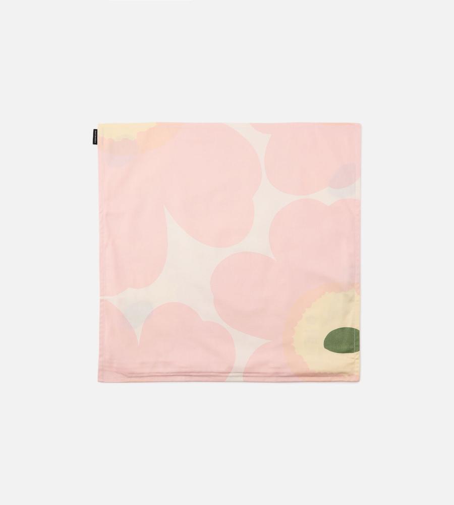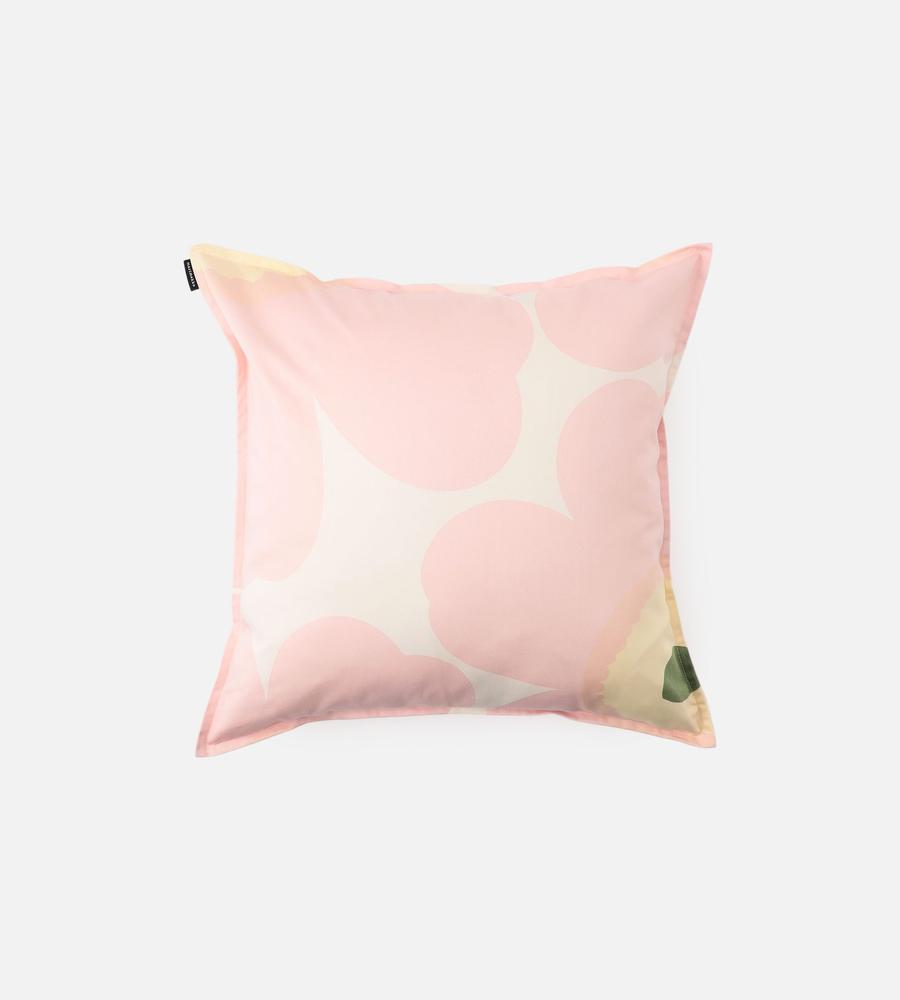 Marimekkoを代表するUnikko柄のクッションカバー(50x50cm)。フラワーモチーフを大きく配した、インパクトのあるデザインが魅力。ジッパーで簡単に取り外し可能。サイドにはブランドロゴタグがさりげなくスタイリッシュなアクセント。インテリアコーディネートが華やかになるアイテムです。