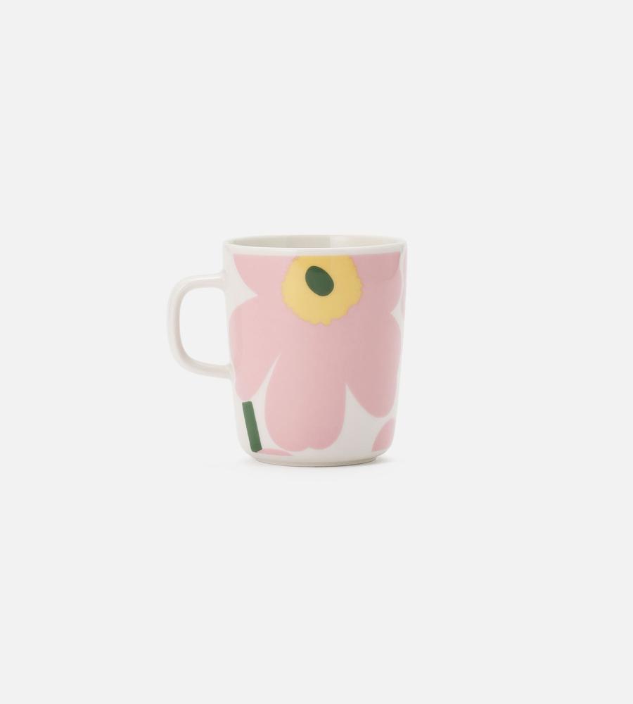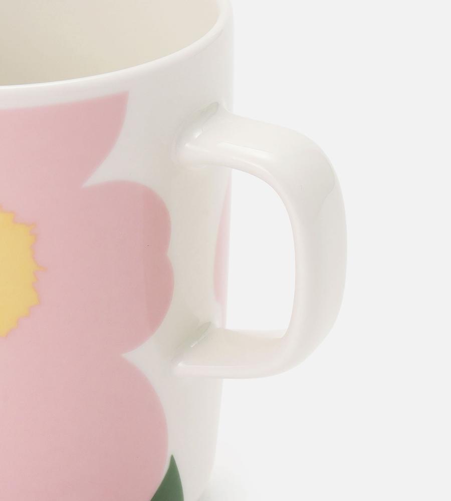 Marimekkoを代表するUnikko柄のマグカップ(250ml)。大きく配されたフラワーモチーフが華やかなデザイン。小ぶりの持ち手がモダンなフォルム。電子レンジ・オーブン・冷凍・食洗機使用可で使い勝手も抜群。テーブルコーディネートにさわやかなアクセントを与えてくれるアイテムです。