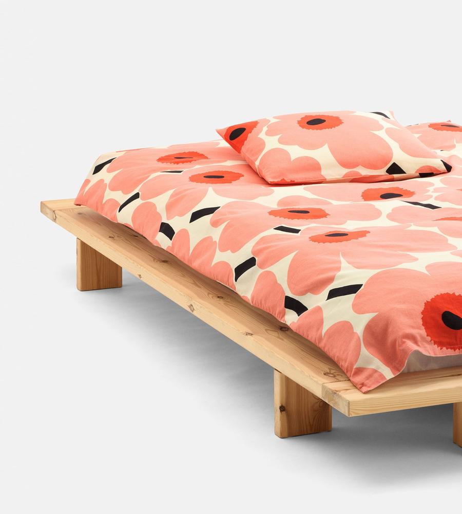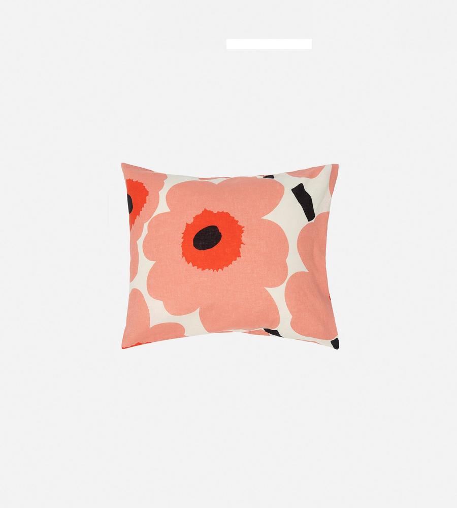 Marimekkoを代表するUnikko柄のピローケース(50×60cm)。大きなフラワーモチーフが全面にプリントされた華やかなデザインが魅力。取り外しやすい便利な形状でデイリーに活躍します。ピンクと赤の明るい配色でお部屋全体を明るく彩ります。スタイリッシュなインテリアアクセントになるアイテムです。