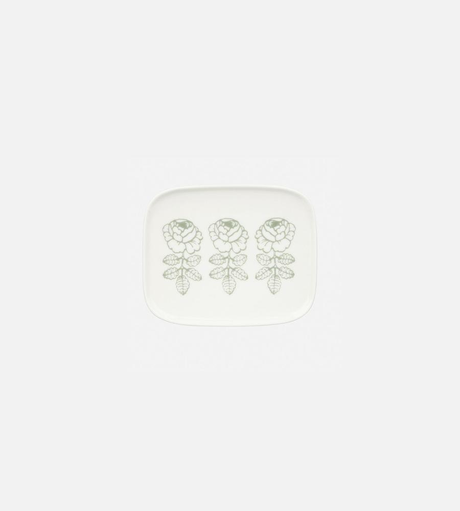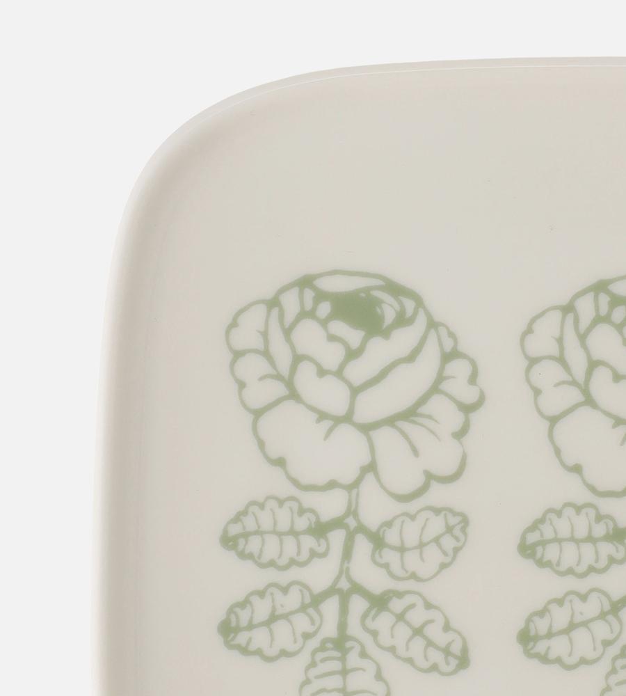 どこかレトロなローズ柄のプレート。やや小ぶりのスクエア型で、副菜や「あと一品」出したいシーンにも便利。ほど良くシンプルなデザインで、長く愛用できそうなのも魅力です。