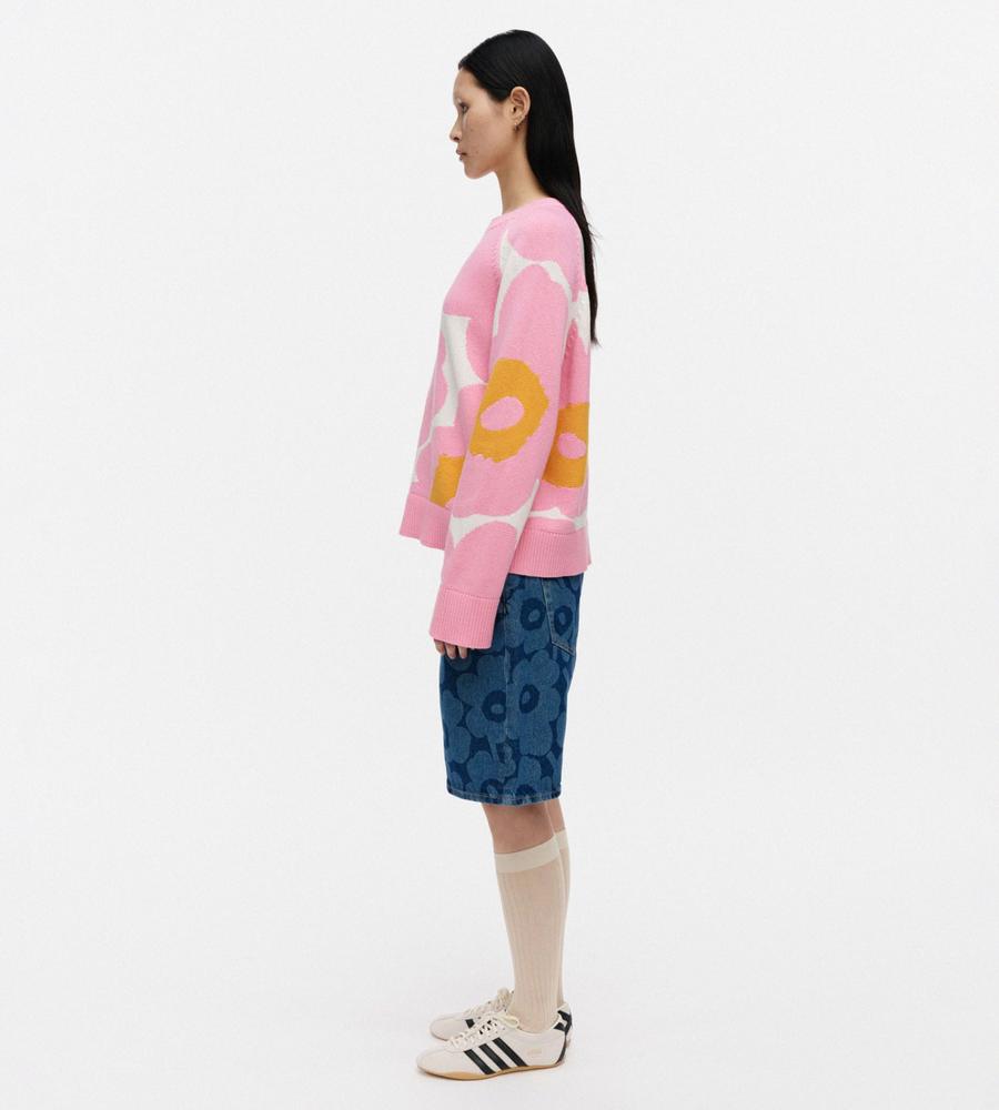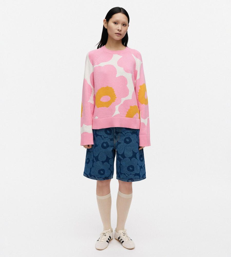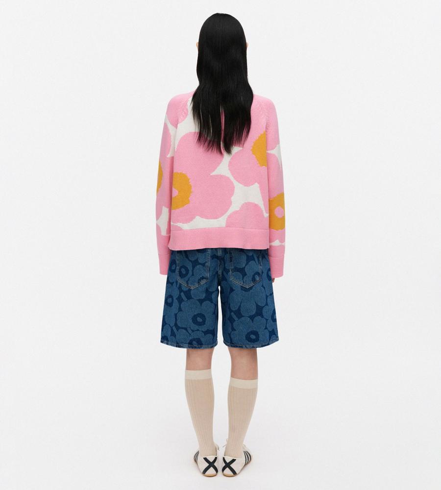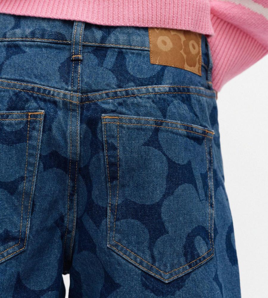 さりげなく主張するUnikko柄が可愛いデニムショートパンツ。いつものカジュアルスタイルも、ワンランク華やかに仕上げてくれそう。さわやかさを演出したいシーンにもおすすめの一本です。