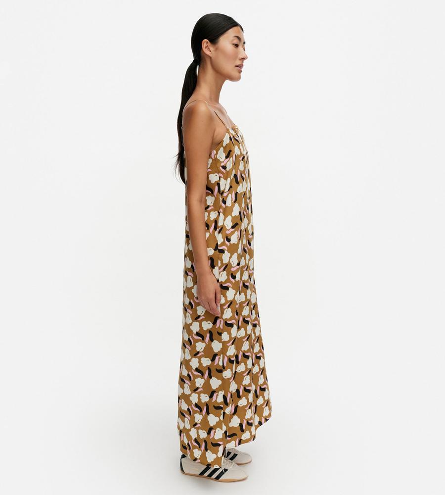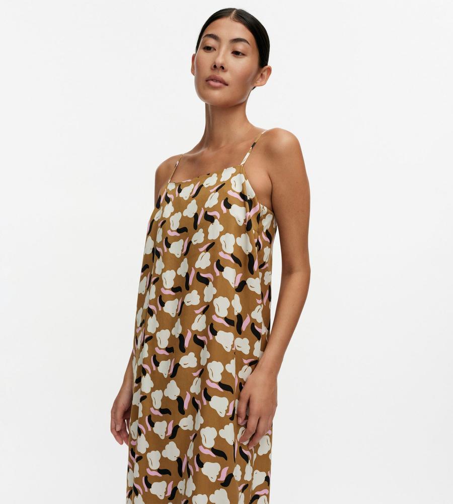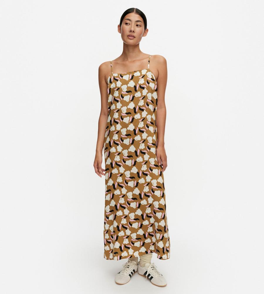 これ1枚でトータルコーデがかなうSh Pyorahdys Lemmittyワンピースです。あわせやすい落ち着いた色合いながら、遠目にも存在感を発揮します。落ち感のあるIラインシルエットとキャミソール仕様の肩ストラップでリゾート感もたっぷり、手持ちのTシャツやカットソーとの重ね着もおすすめです。