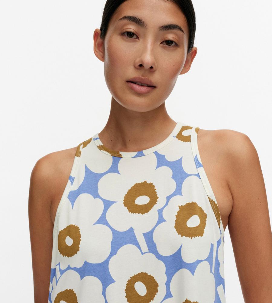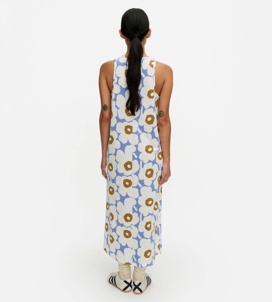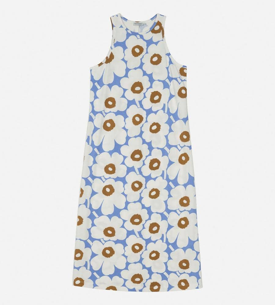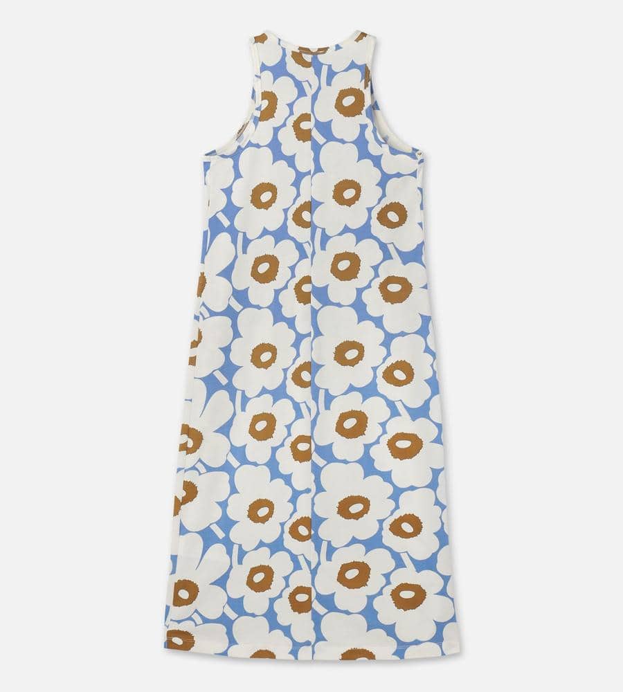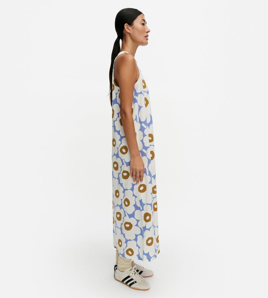 Marimekkoを代表する華やかなデザインのUnikko柄のロング丈ワンピース。スリムフィットのストレートカット、深めのラウンドネック、リブ編みの裾などスタイリッシュなシルエット。手触りの良いコットン生地で仕立てた着心地の良い一枚。華やかな春夏コーディネートが完成するアイテムです。