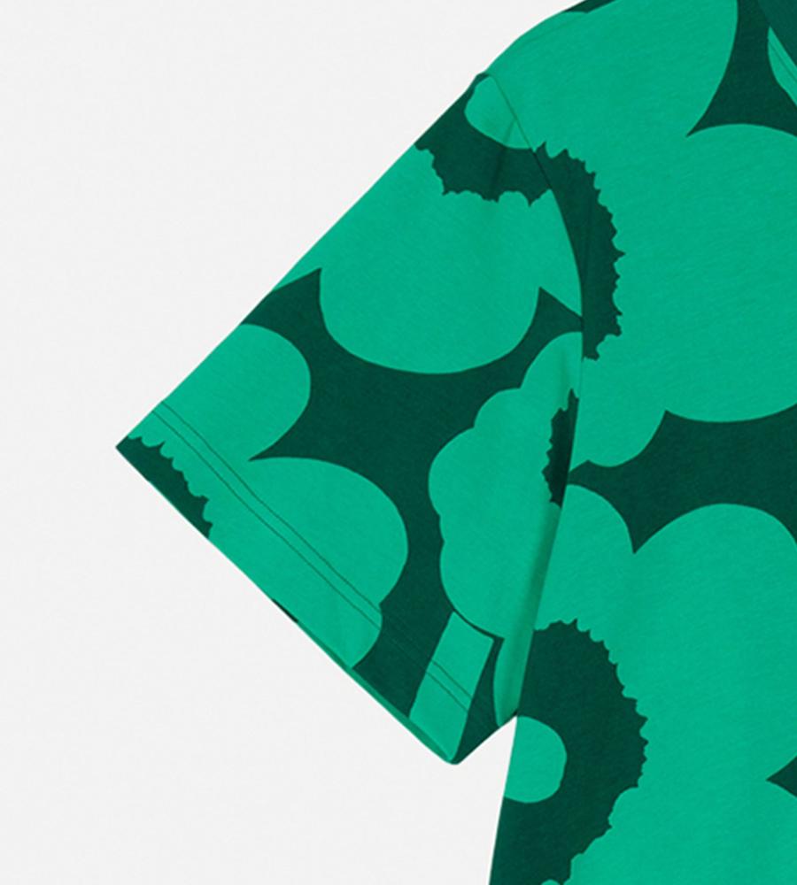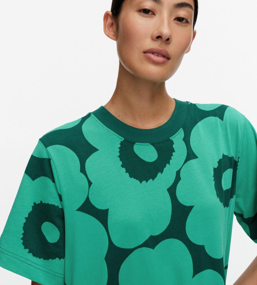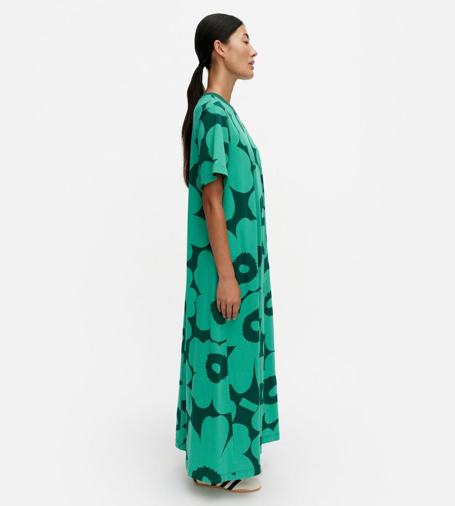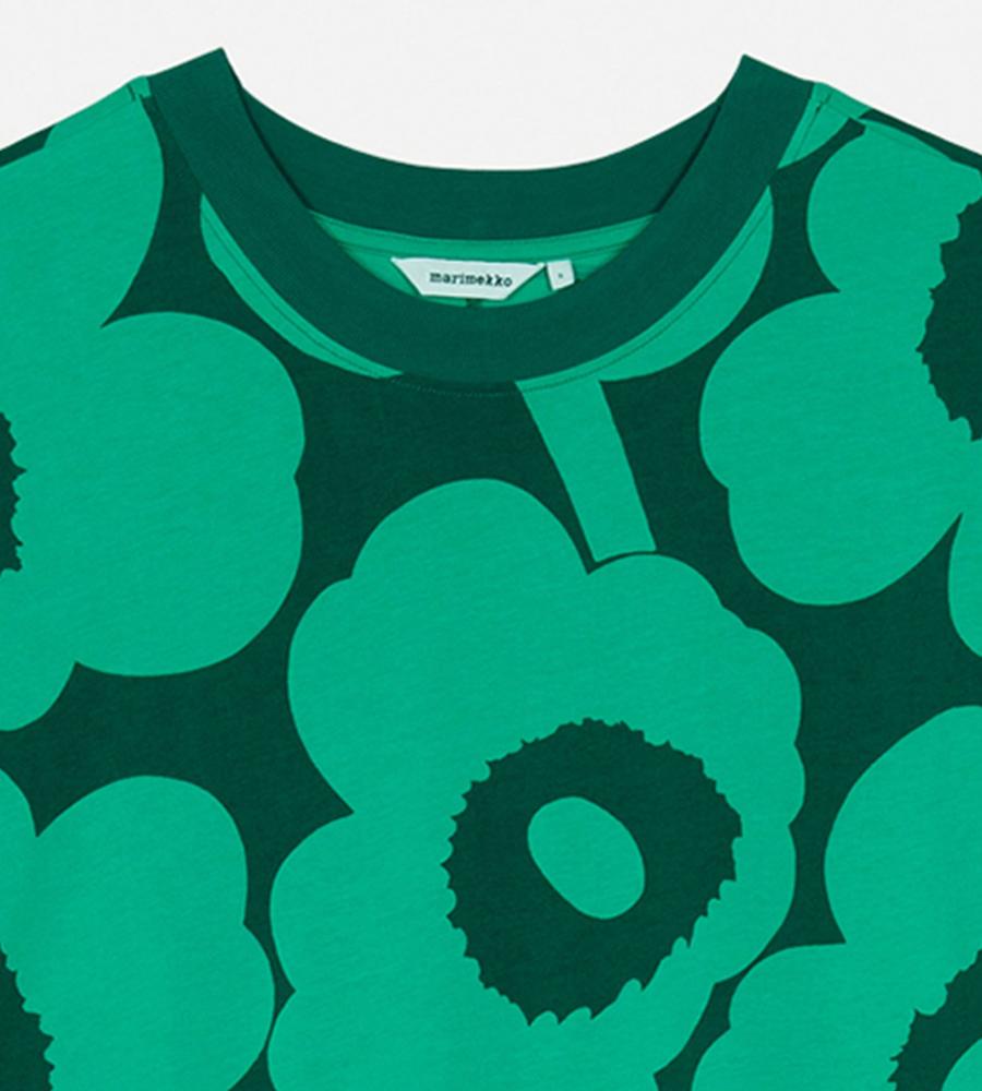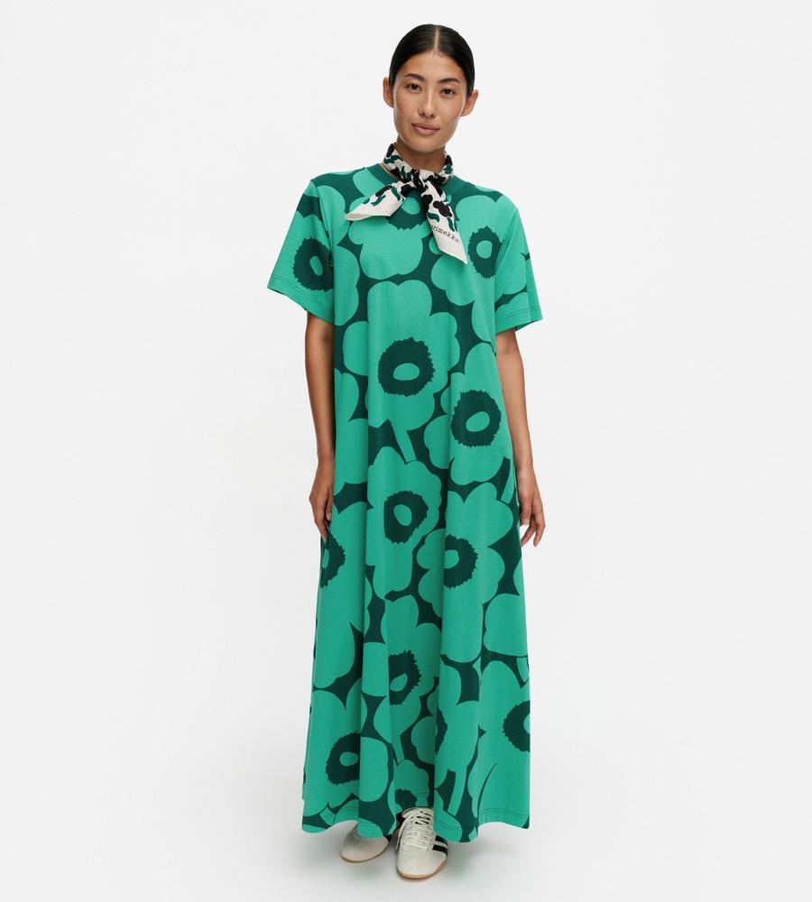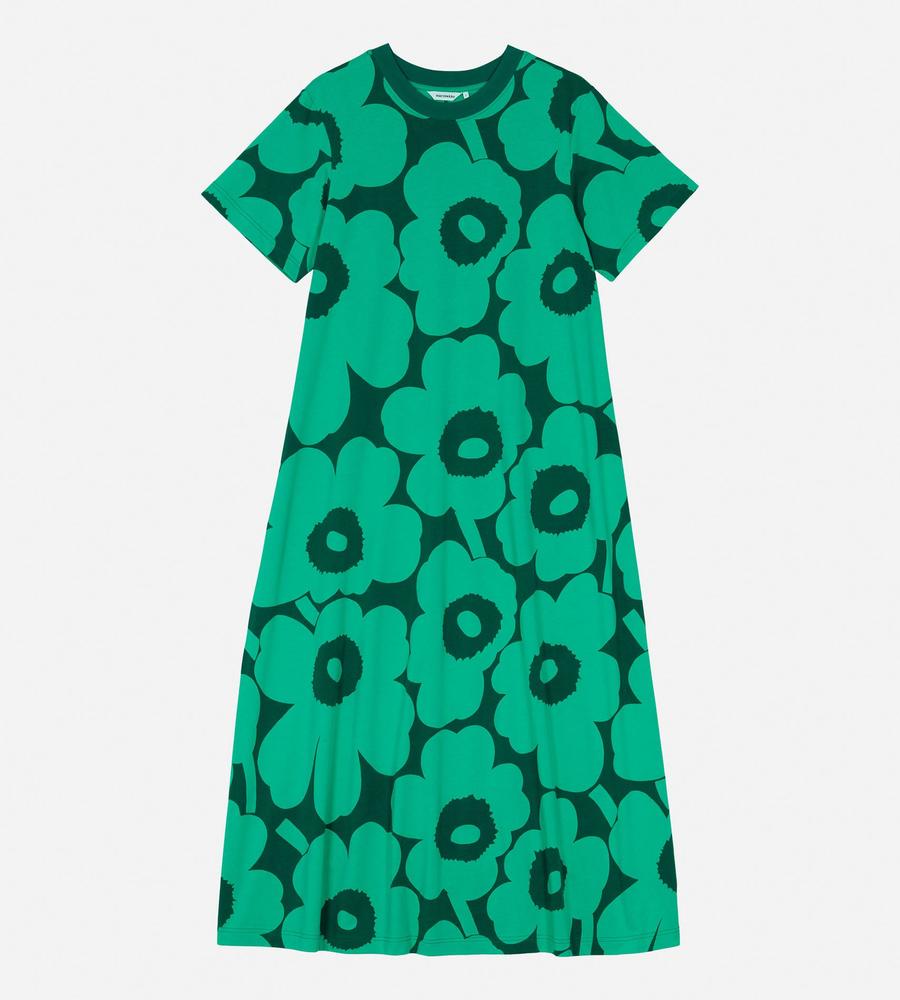 遠目にもMarimekkoだと一目でわかるSh Koostua Unikkoワンピースです。これ1枚でトータルコーデはお任せ、存在感たっぷりなUnikko柄でお手軽に北欧スタイルが楽しめます。タウンユースがしやすい半袖丈、ゆったり着られるAラインシルエットで体型カバーもお任せです。