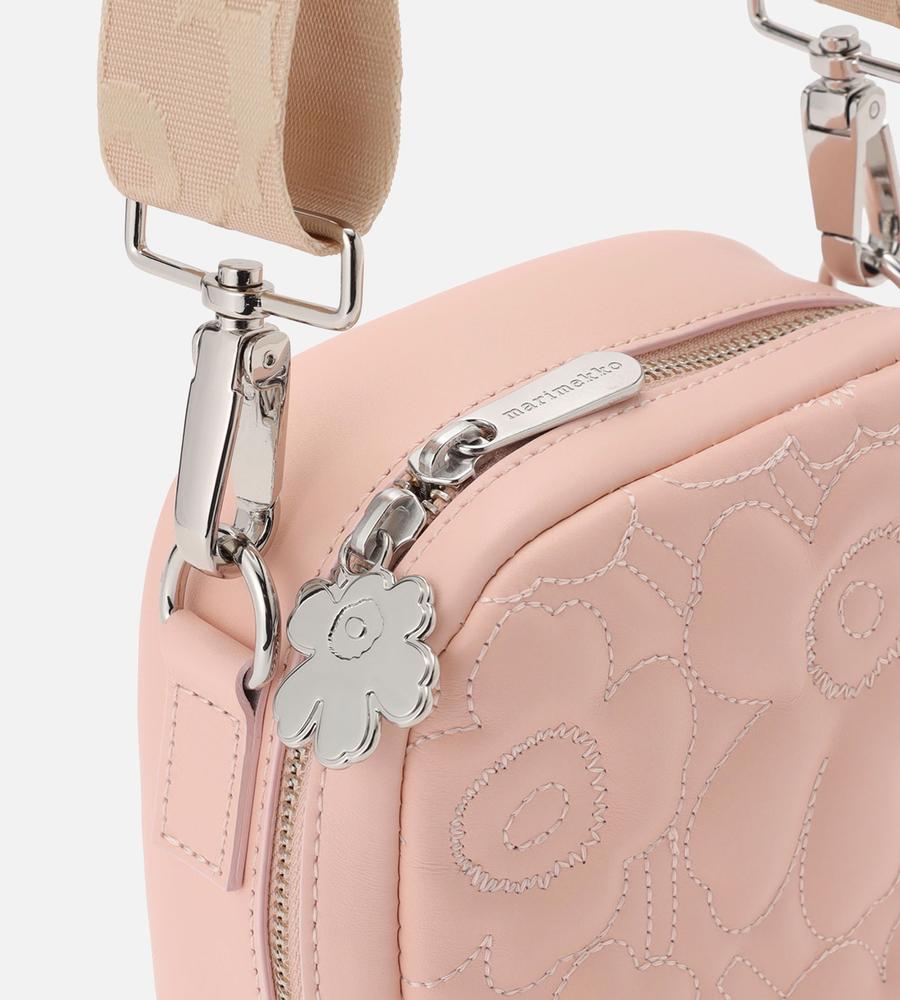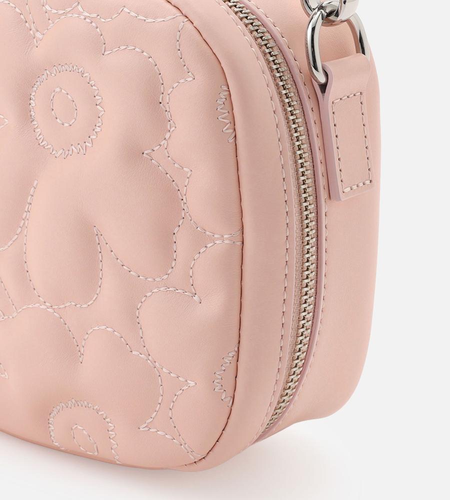 レザーキルティングでUnikko柄をデザインしたショルダーバッグです。ふっくら立体感を持たせたUnikko柄がキュート、ストラップにも同じ柄を使いディテールにもこだわりました。財布やスマホがぴったり収まる小さめのサイズ感がポイント、毎日のお出掛けはもちろん旅行やショッピングなどにもぴったりです。