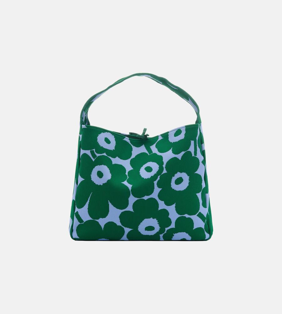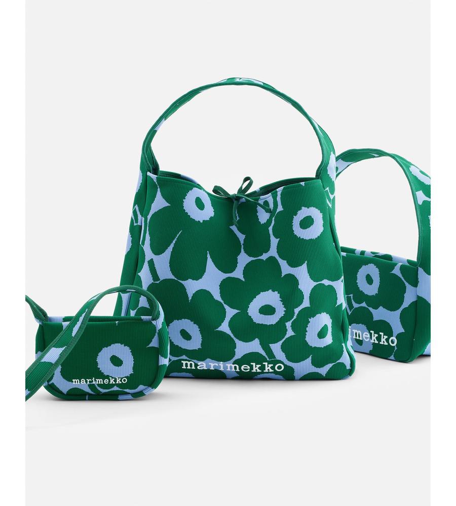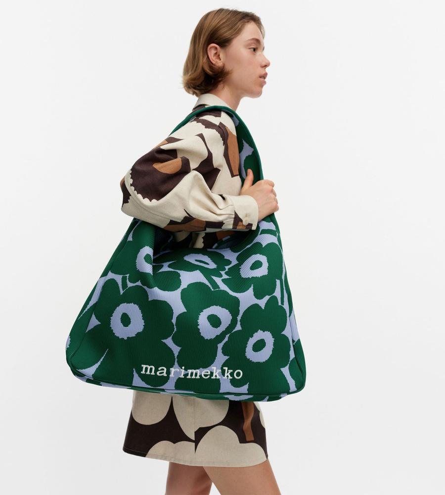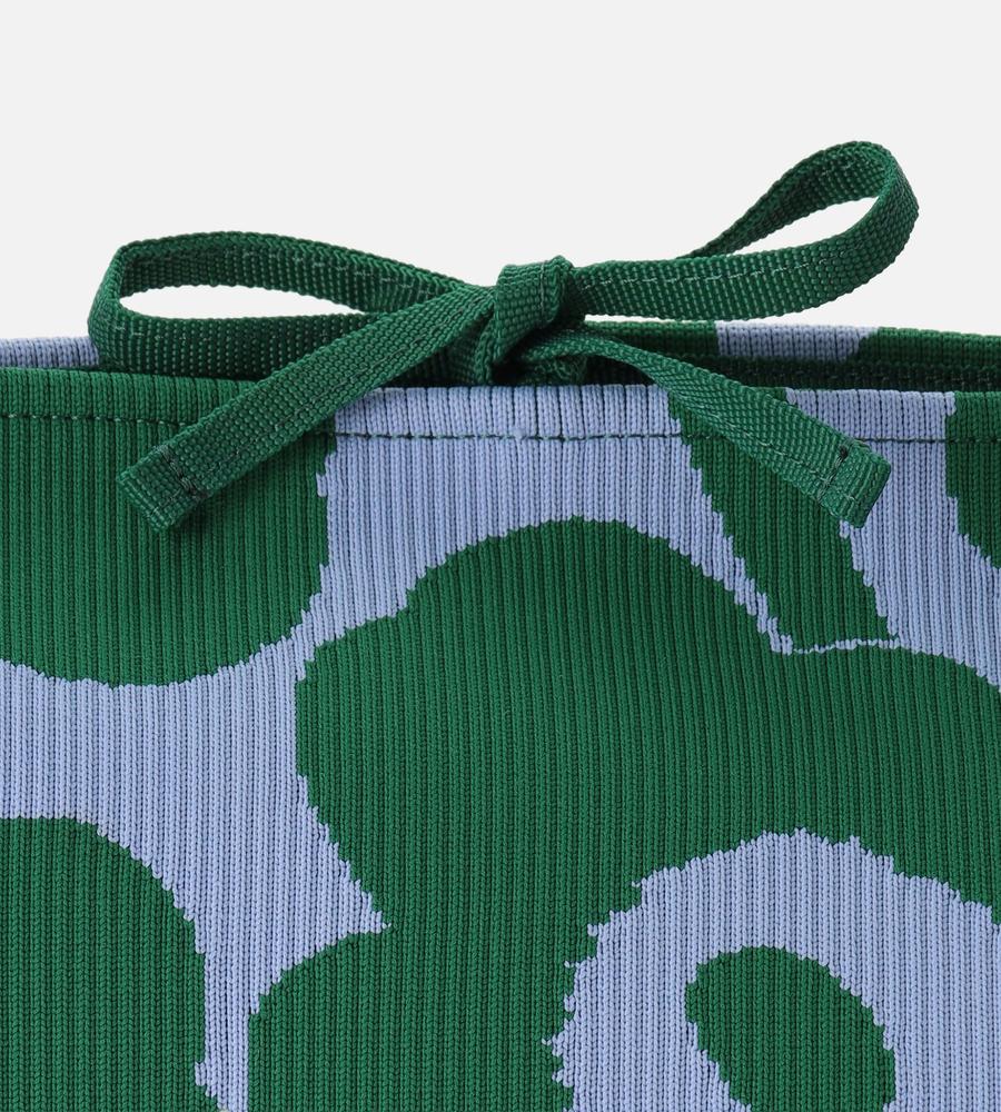 遠目にも存在感たっぷりなUnikko柄で仕上げたトートバッグです。柔らかくて丈夫なニット素材を使用、マチたっぷりのラージサイズで普段使いはもちろんショッピングや旅行など色んなシーンでお使いいただけます。肩掛けがしやすいワンハンドル仕様、他のサイズの同柄バッグとセットでそろえるのもおすすめです。
