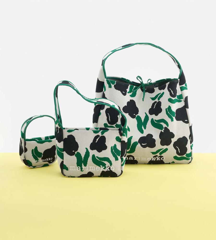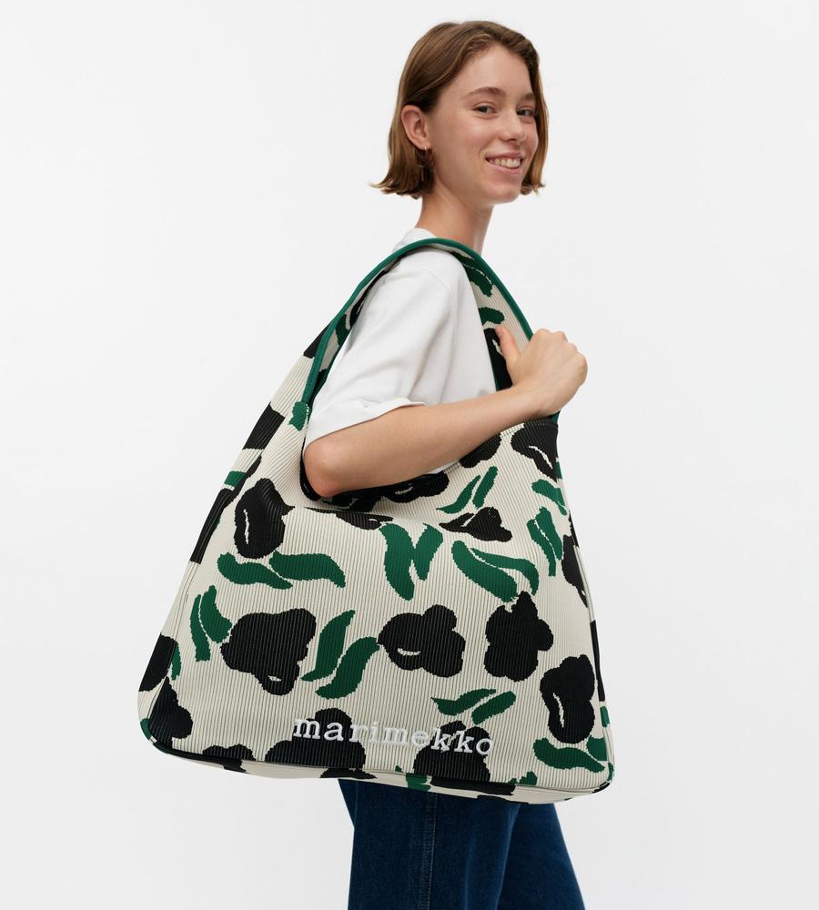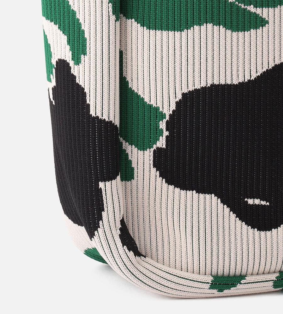 遠目にもフェミニンな存在感を発揮するLemmitty柄のトートバッグです。柔らかくて丈夫なニット素材仕立て、ラージサイズはマチもたっぷりで普段使いはもちろんショッピングや旅行など色んなシーンでお使いいただけます。肩掛けがしやすいワンハンドル仕様、他のサイズの同柄バッグとセット買いもおすすめです。