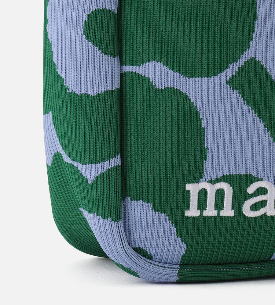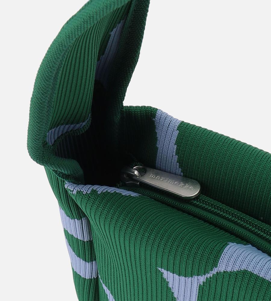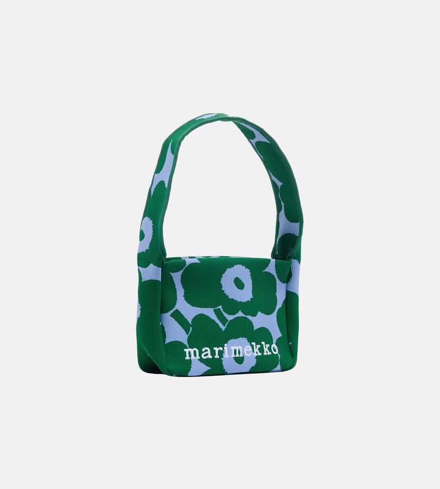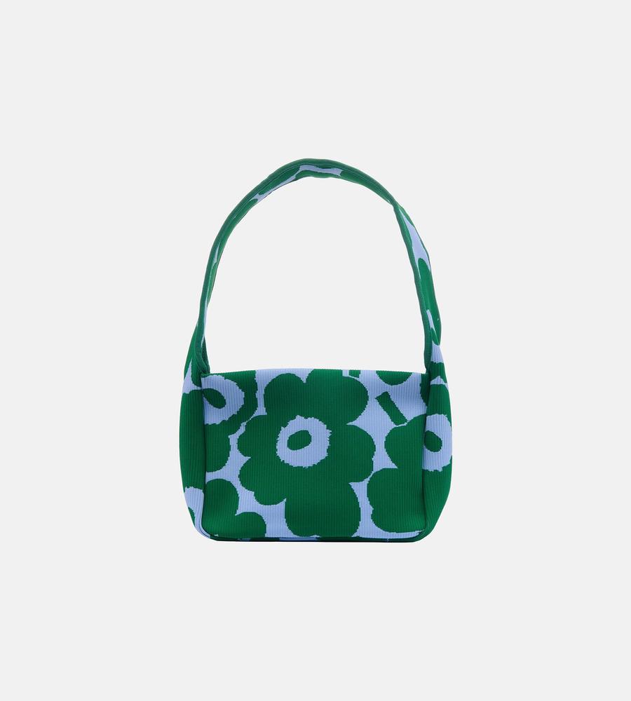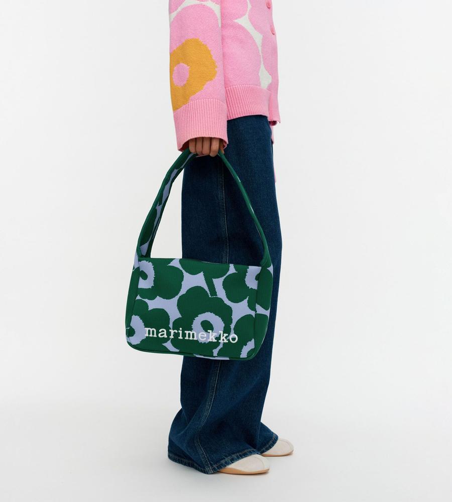 遠目にも存在感たっぷりなUnikko柄で仕上げたショルダーバッグです。ワンハンドルデザインで肩掛けしやすく、柔らかくて丈夫なニット素材で使い心地にもこだわりました。お手頃なサイズ感で毎日のお出掛けはもちろん旅行先でも大活躍、他のサイズの同柄バッグとセットでそろえるのもおすすめです。