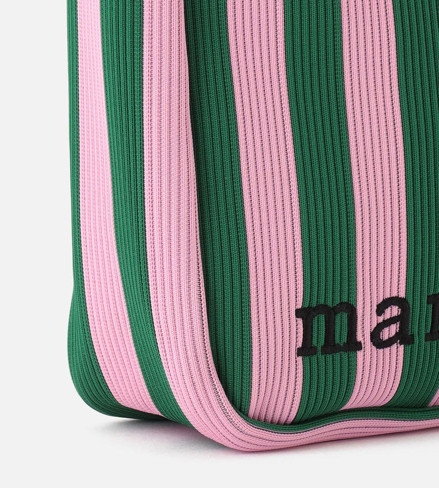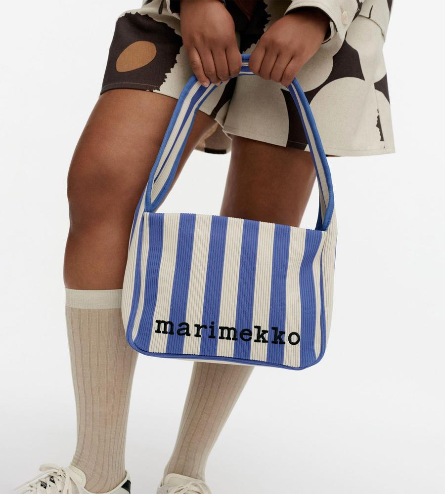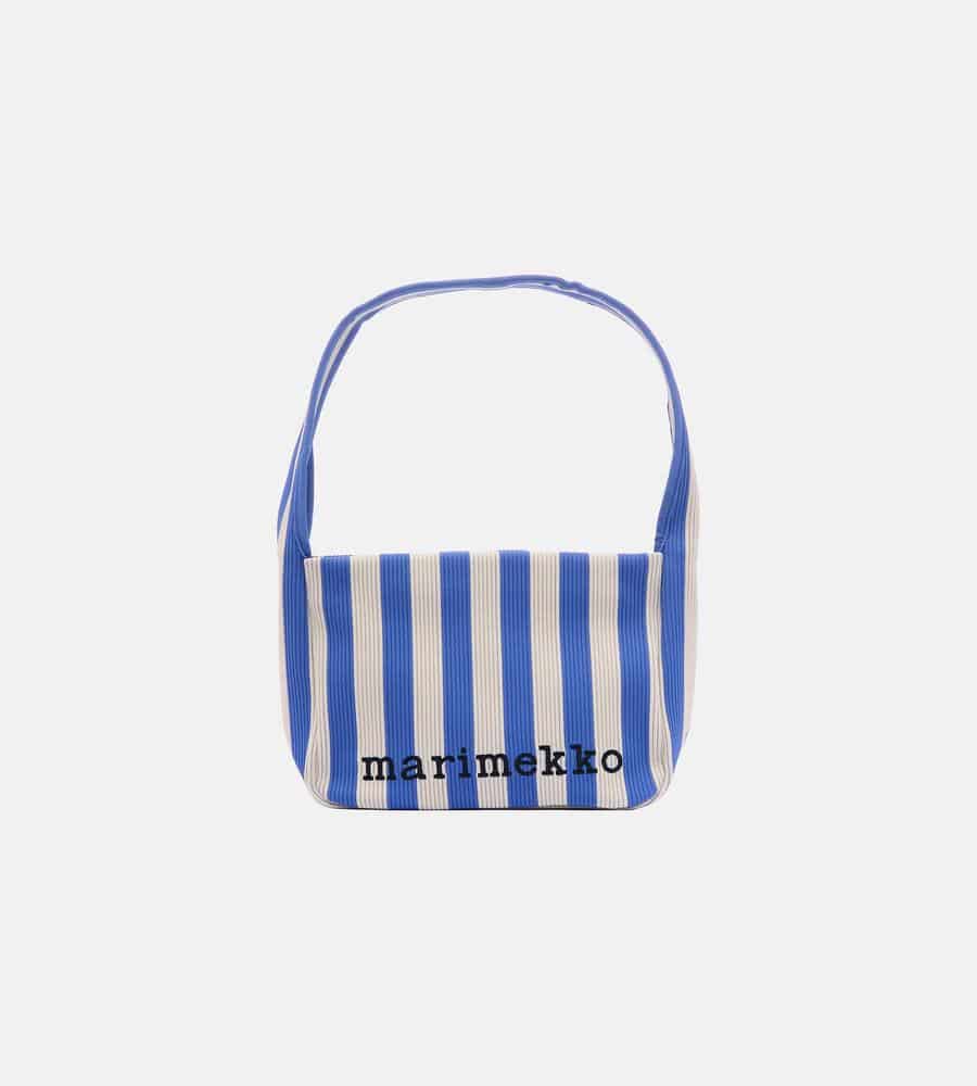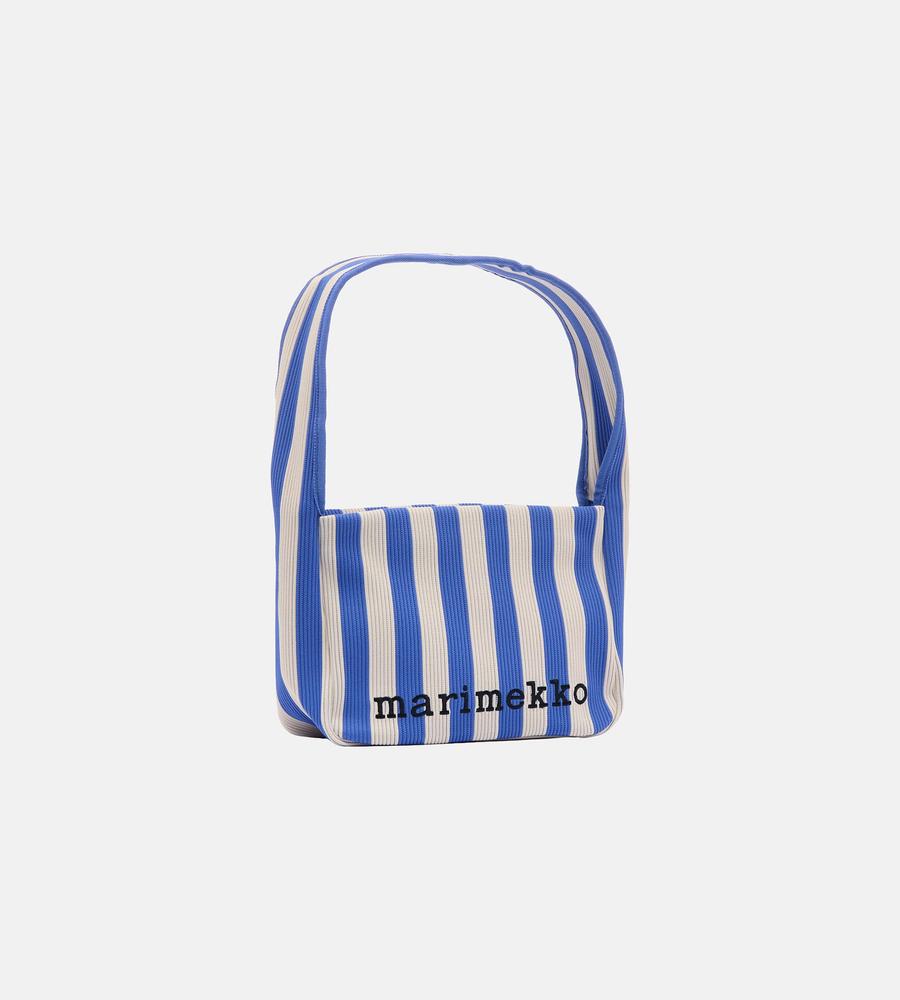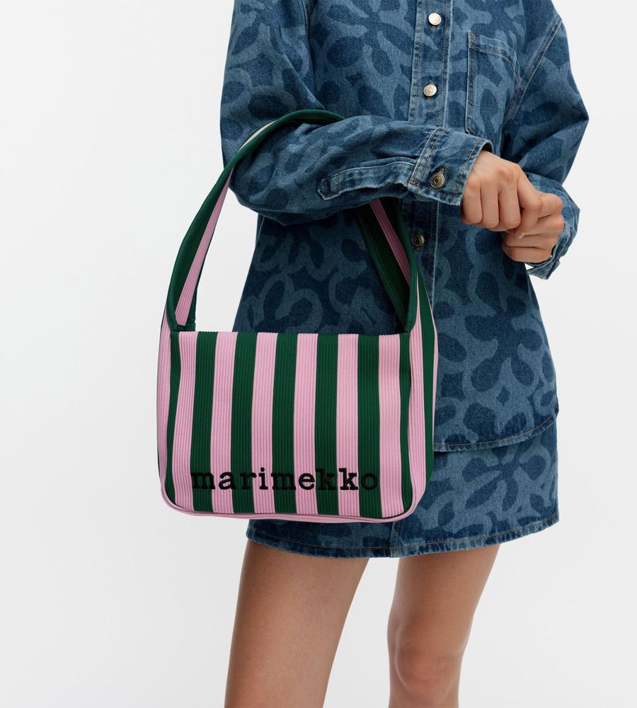 コーデの偏差値をアップする、アイキャッチなストライプ柄で仕上げたショルダーバッグです。ワンハンドルデザインで肩掛けしやすく、柔らかくて丈夫なニット素材で使い心地の良さにもこだわりました。お手頃なサイズ感で毎日のお出掛けにぴったり、他のサイズの同柄バッグとセットでそろえるのもおすすめです。