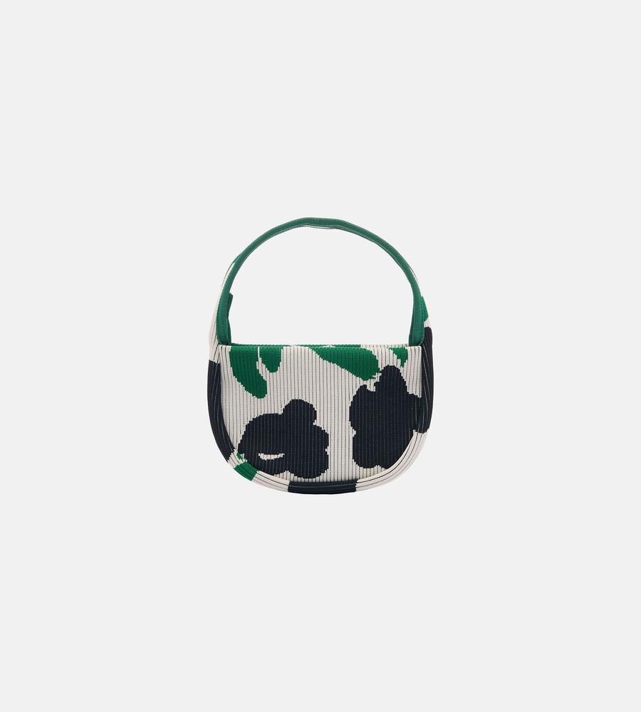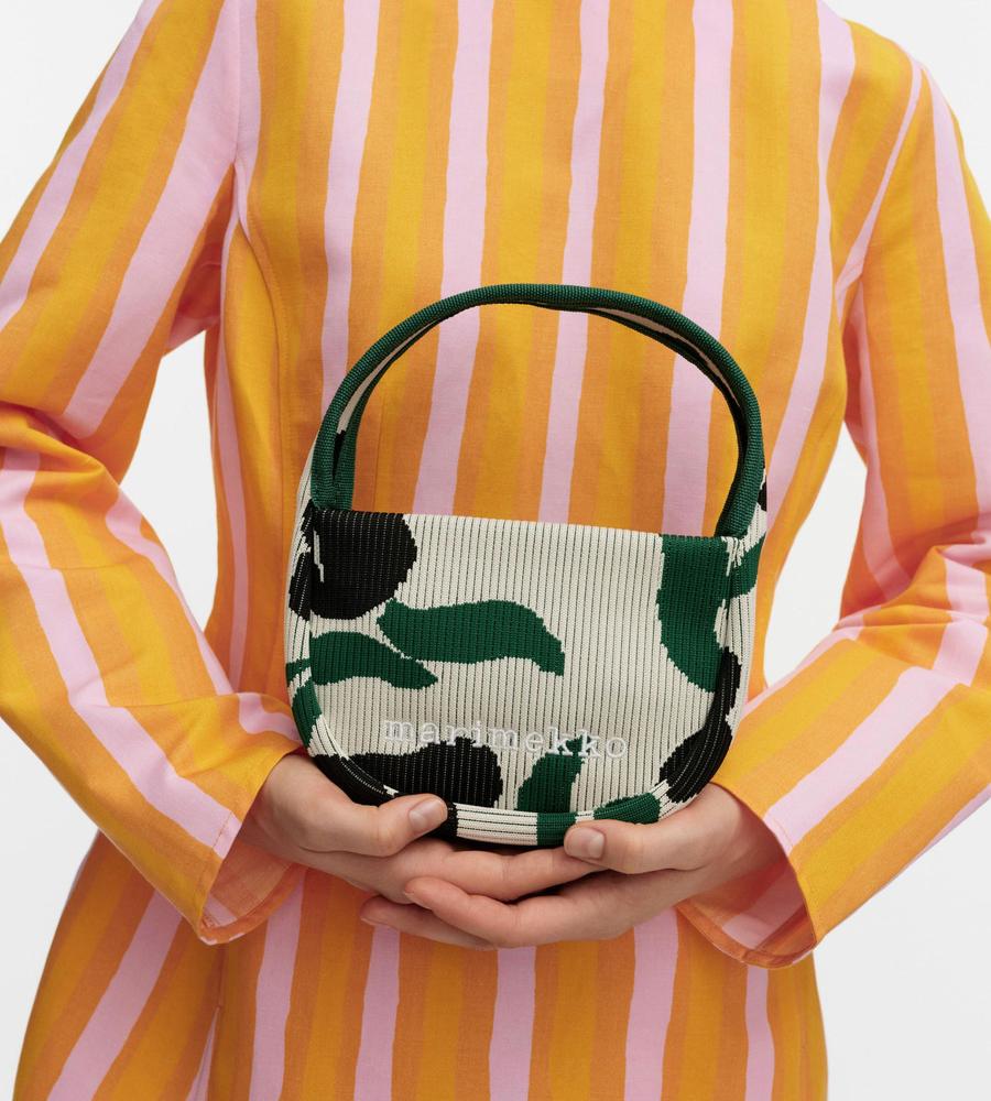 コーデにフェミニンなアクセントをプラスするLemmitty柄のハンドバッグです。毎日のお出掛けにぴったりな、財布やスマートフォンなど身の回りの小物が収まるサイズ感にこだわりました。柔らかくて丈夫なニット素材ならではの使い心地の良さもポイント、他のサイズの同柄バッグとセットでそろえるのもおすすめです。