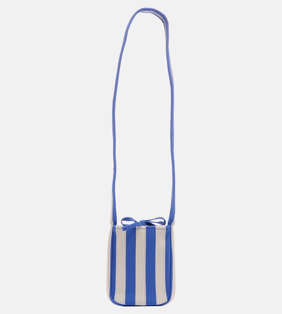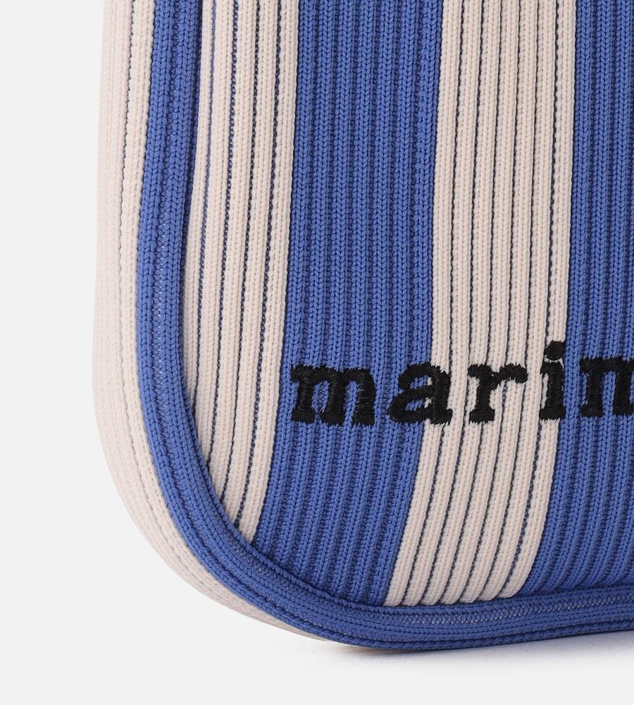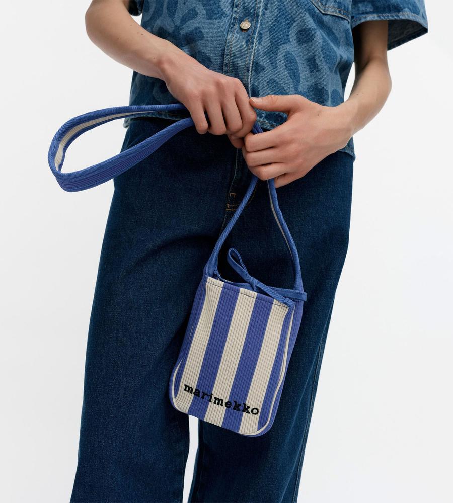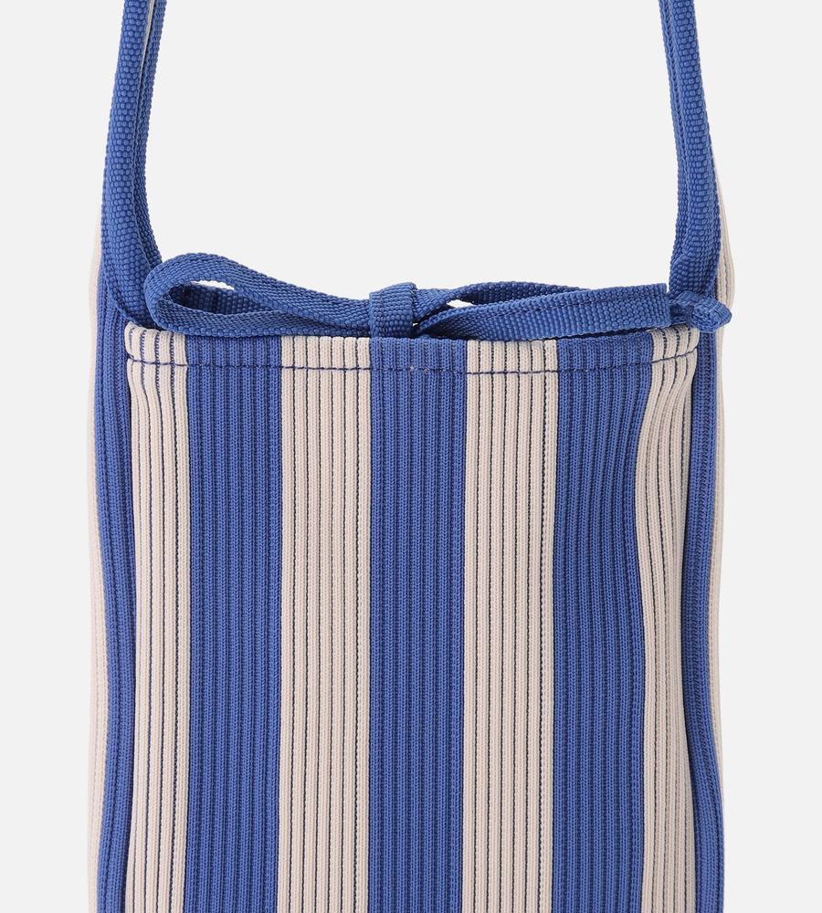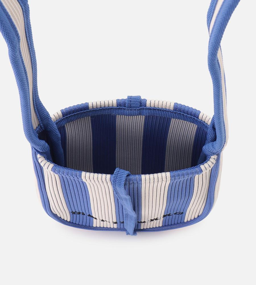メリハリ感をきかせたストライプ柄で、遠目にもアイキャッチに持てるショルダーバッグです。お使いのスマートフォン専用アイテム、斜め掛けがしやすい長めのワンハンドルで仕上げました。柔らかくて丈夫なニット素材ならではの使い心地の良さもポイント、他のサイズの同柄バッグとセットでそろえるのもおすすめです。