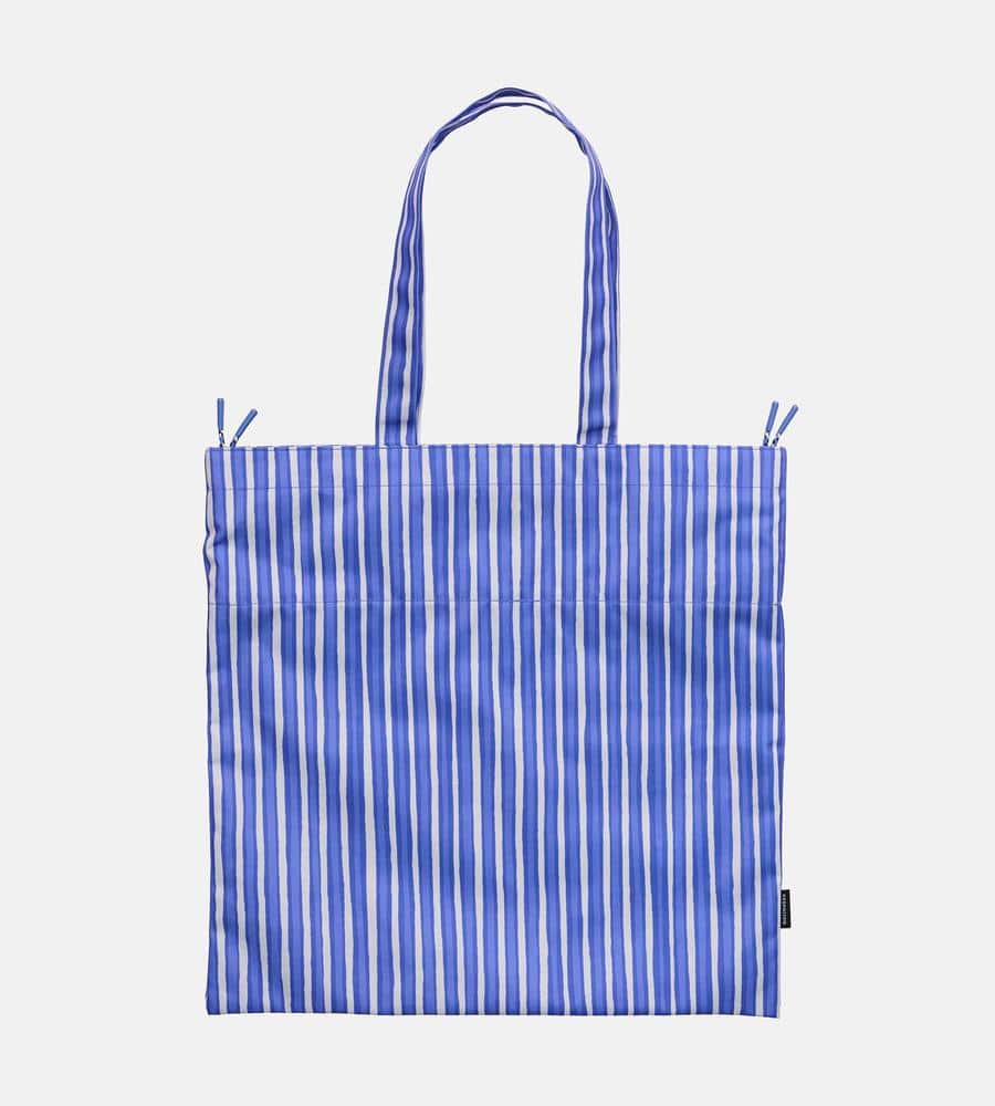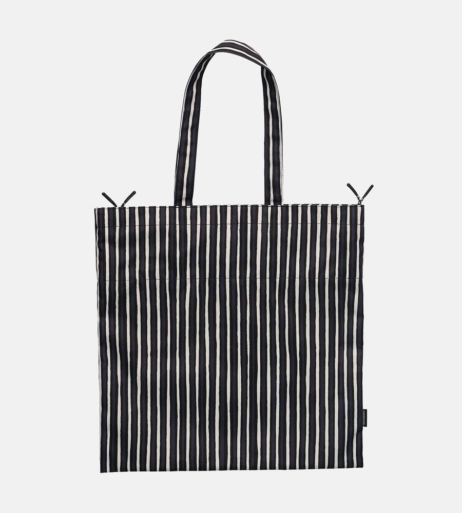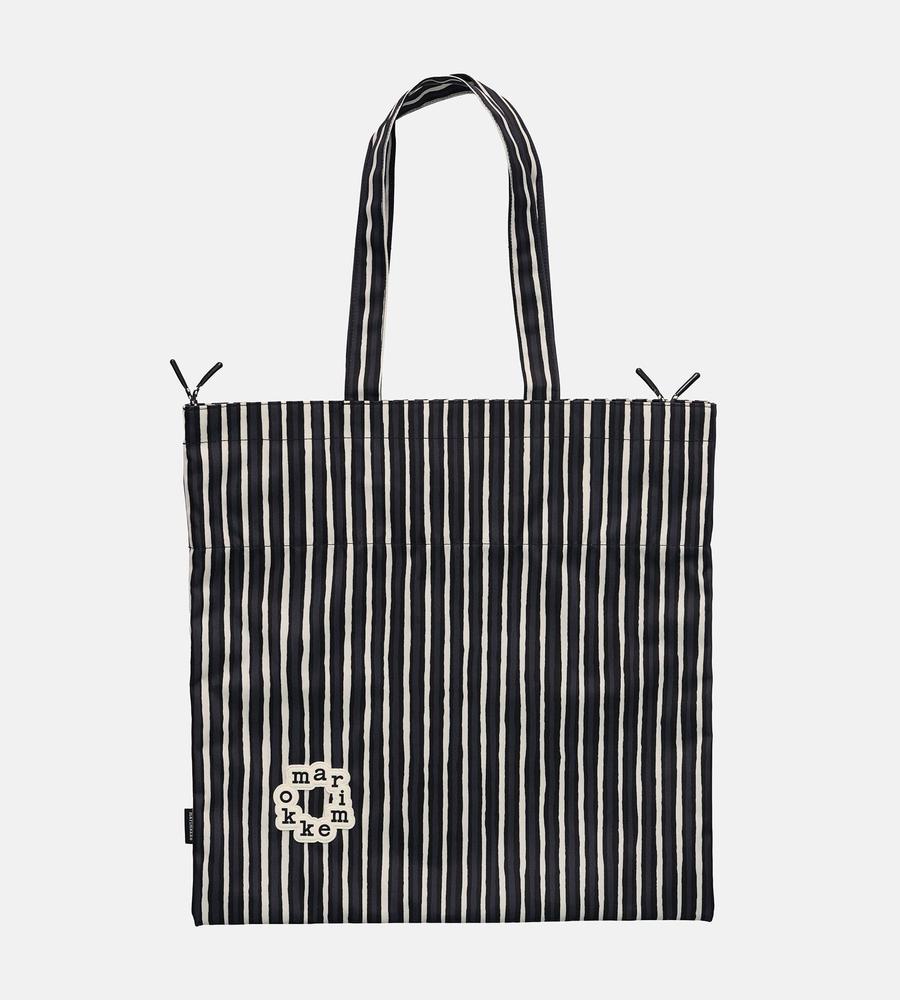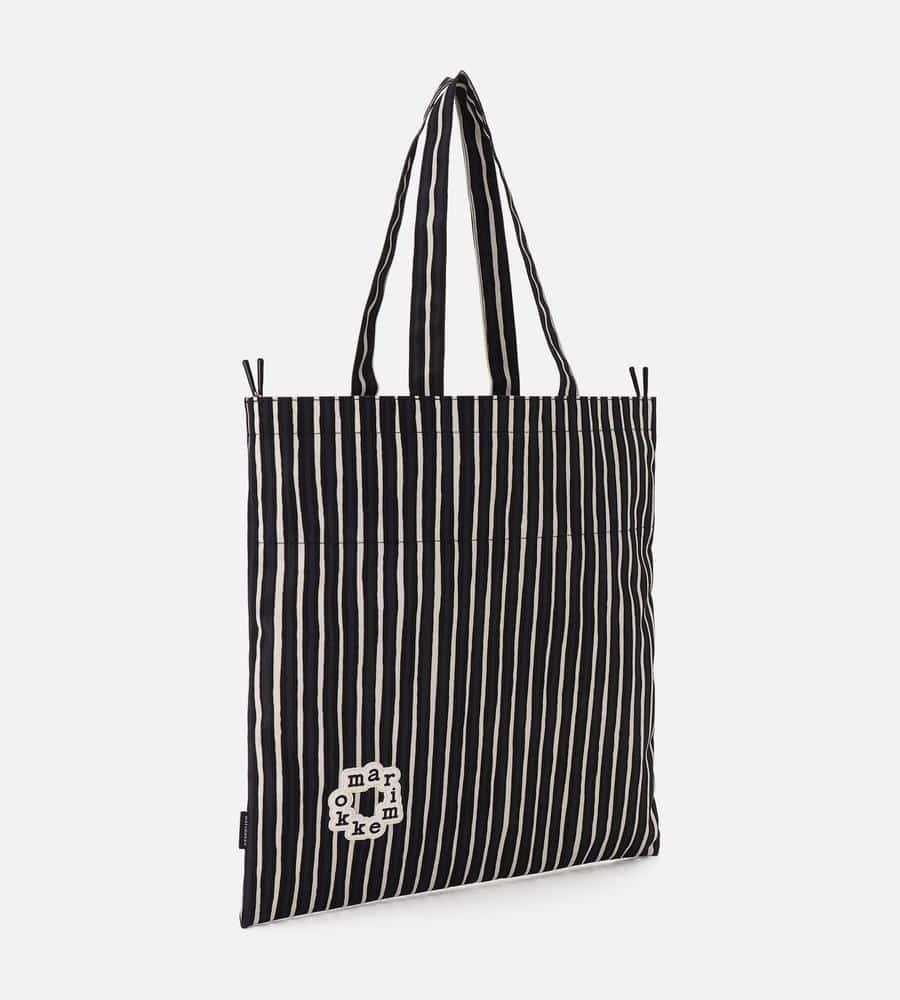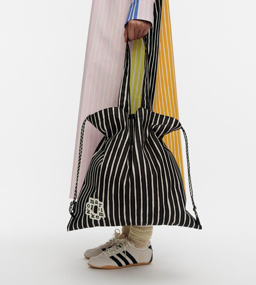 Vuokko Eskolin-Nurmesniemiがデザインを担当した、擬音の「ピッコロ」を表すPiccolo柄のトートバッグです。収納力に優れた大容量のタテ型で、様々なシーンで活躍。間口をドローコードで絞ることができる巾着仕様。その日の気分や荷物の量に合わせて、形に変化を付けられます。