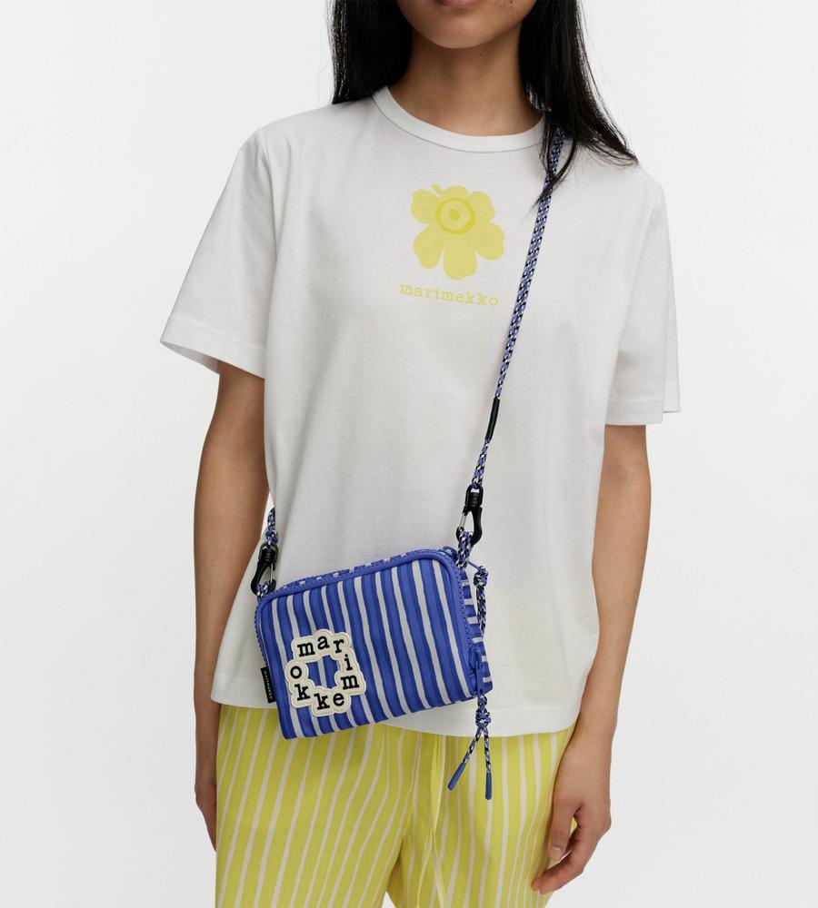 Vuokko Eskolin-Nurmesniemiがデザインを担当した、擬音の「ピッコロ」を表すPiccolo柄ショルダーバッグ。メインルームが2室に分かれているため、荷物を整理整頓できます。普段の装いにプラスすれば、爽やかなコーディネートが完成。同シリーズのサイズ違いもご用意しています。