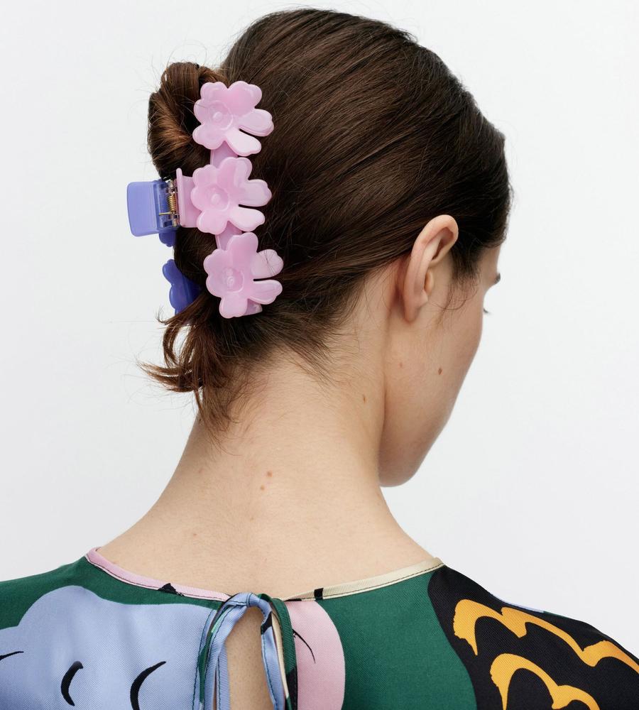 Unikkoモチーフのヘアクリップです。大胆なツートーンで、個性が際立つヘアアレンジが完成します。手軽に髪をまとめて留めることができるため、ポーチなどに入れて持ち歩くと便利。その日のコーディネートに合わせて着替えられるよう、色違いで揃えておくのもおすすめです。贈り物にも最適なアイテムです。
