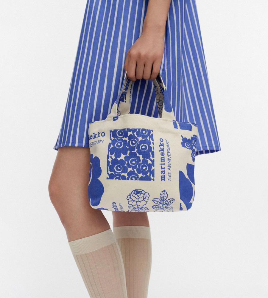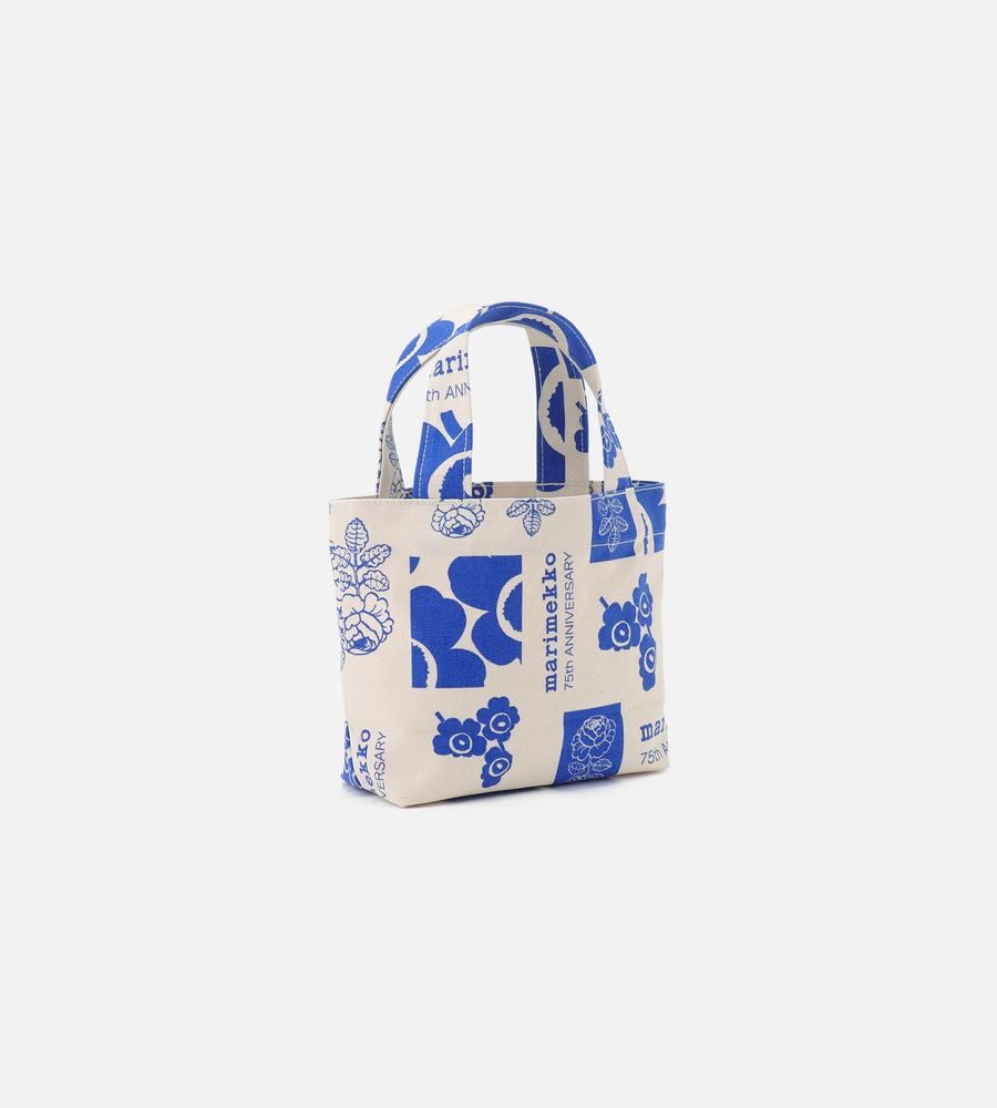 マリメッコ創立75周年を記念した、アジア限定の特別なトートバッグです。Maija Isolaによるプリント2種を融合させたアニバーサリーデザインは、ファン必見アイテム。ナチュラルな生地をベースに、鮮やかな配色のプリントが際立ちます。普段のお出かけからご旅行まで、幅広く活躍するサイズ感です。