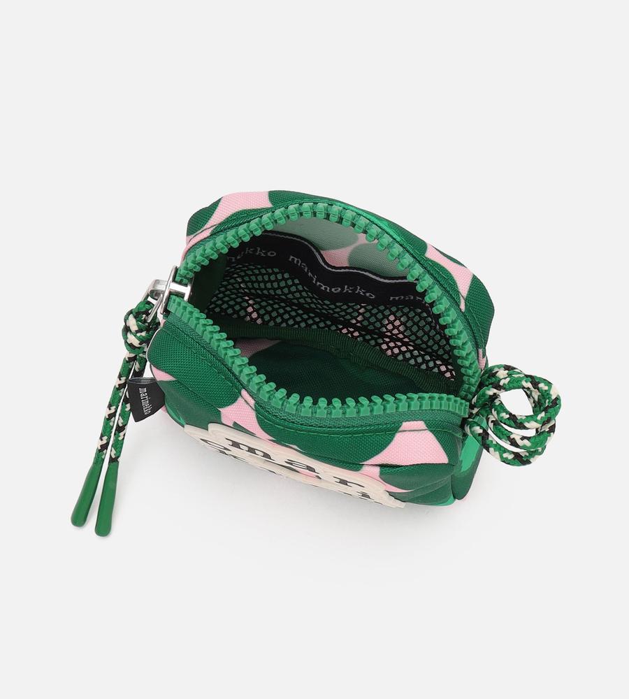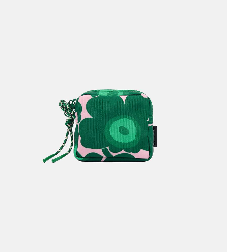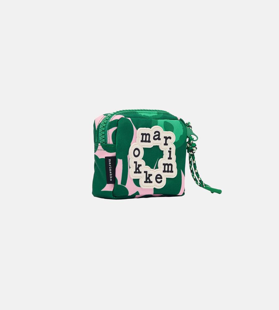 デザイナーMaija Isolaによる、「花」を意味するUnikko(ウニッコ)柄のプリントが美しいジップポーチ。サークル状に配置されたMarimekkoロゴが印象的なデザインです。コンパクトなサイズ感でかさばらず、リップや目薬、ガジェット類など細かなアイテムをひとまとめにして持ち歩けます。