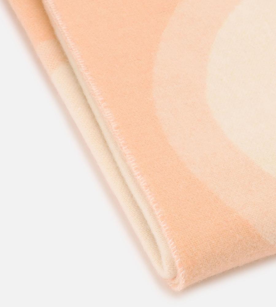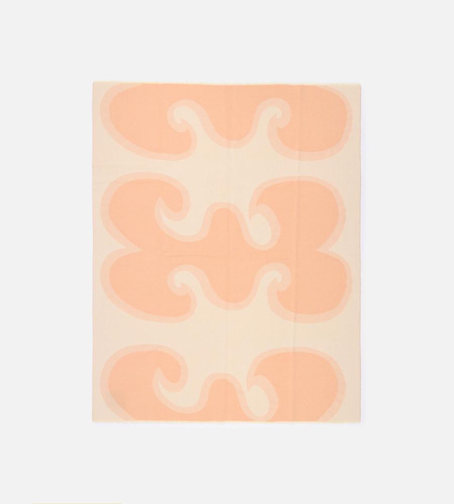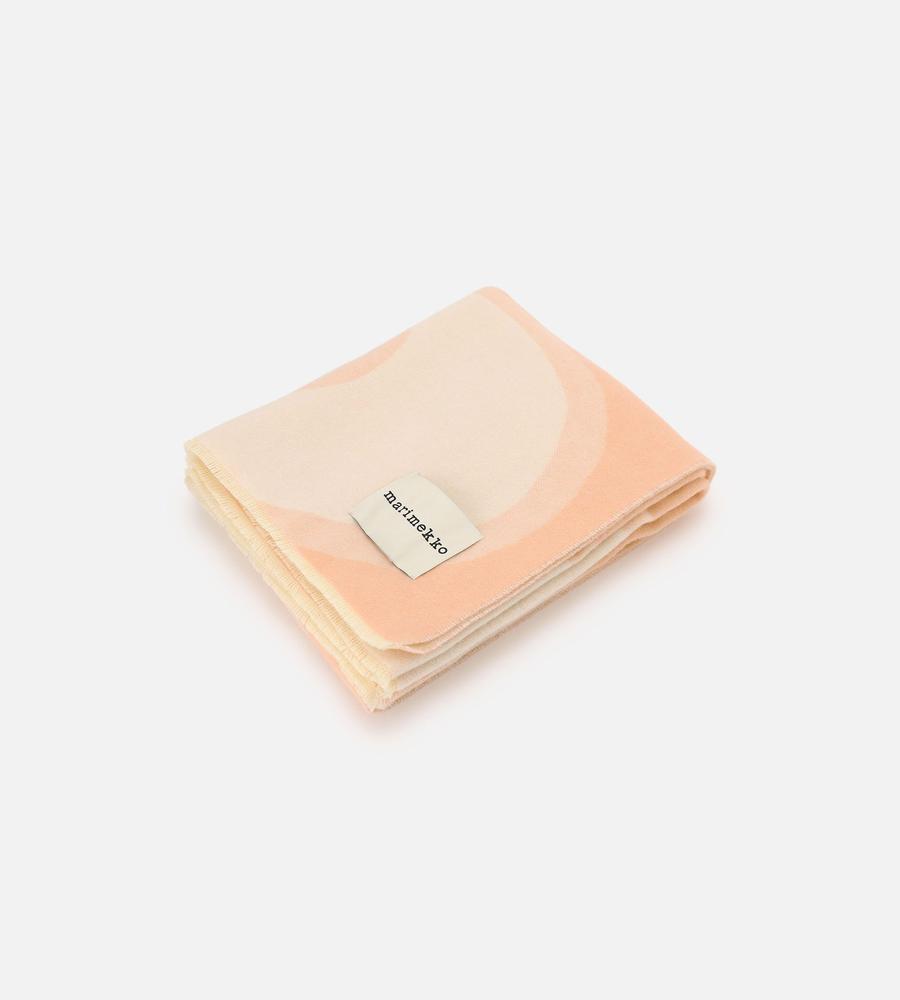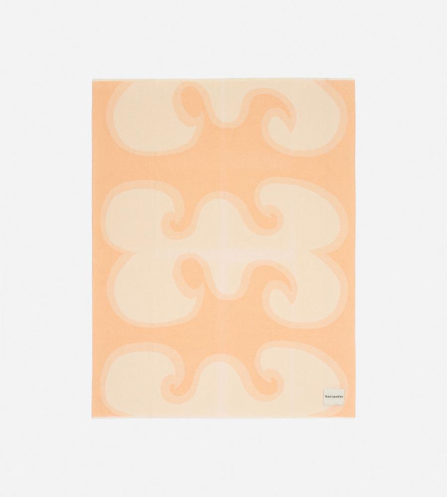 ユニークかつコミカルなモチーフを意匠的に用いた「Jokeri」プリントのブランケット。130×170cmの大判サイズは、身体をすっぽりと覆う大きさです。リビングルームでの使用はもちろん、ドライブやキャンプ、または寝室でも活躍。淡く明るいカラーリングで、空間に華やかな彩りを添えるアイテムです。