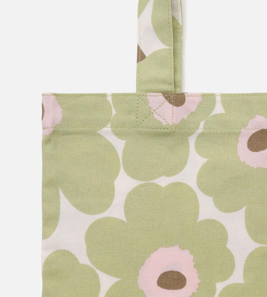 身軽な外出を叶えるトートバッグ。マチがあるため、お弁当などを入れるランチバッグにも最適です。華やかなUnikko柄が、見るたびに明るい気分にしてくれそうな一品。