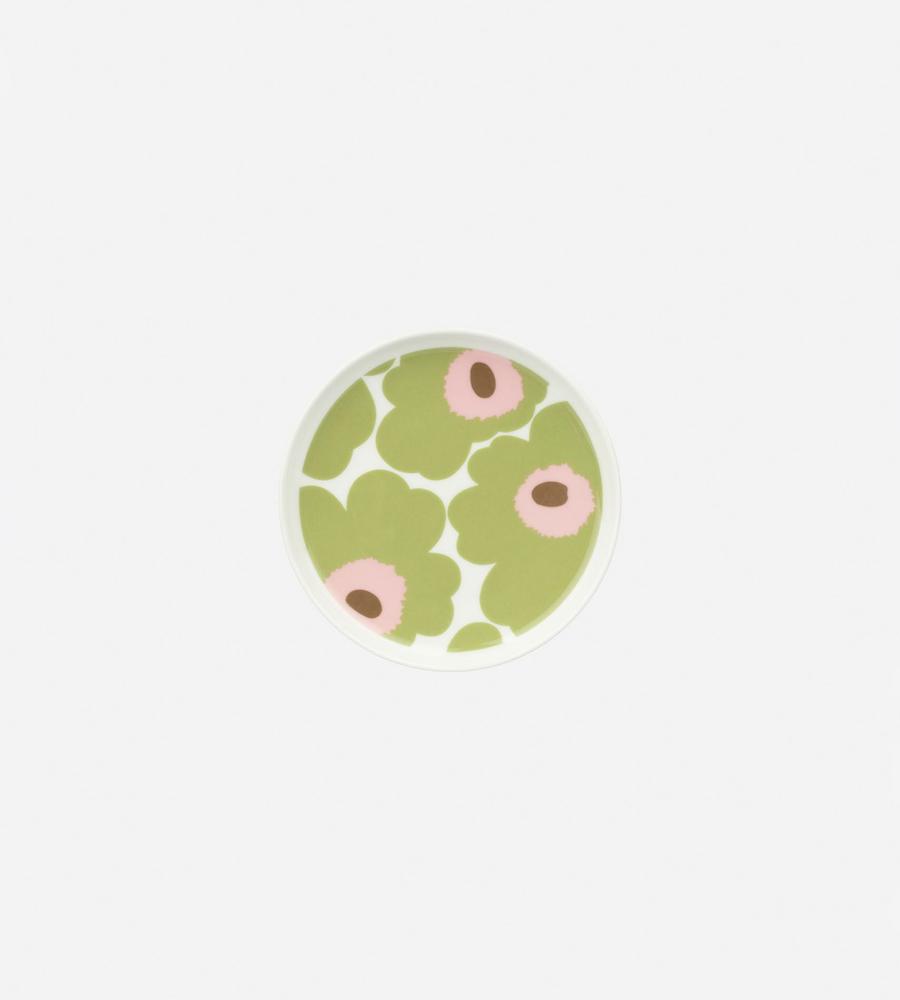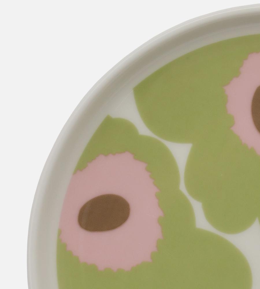 日本限定のUnikko柄プレート。ペールグリーンのUnikko柄は、ナチュラルで上品な雰囲気。副菜やデザートをのせたり取り皿として使用したりと、幅広く活躍してくれます。