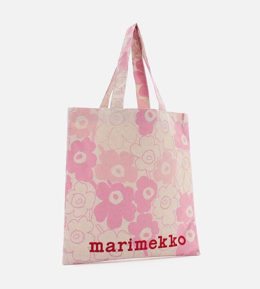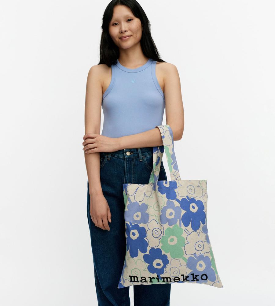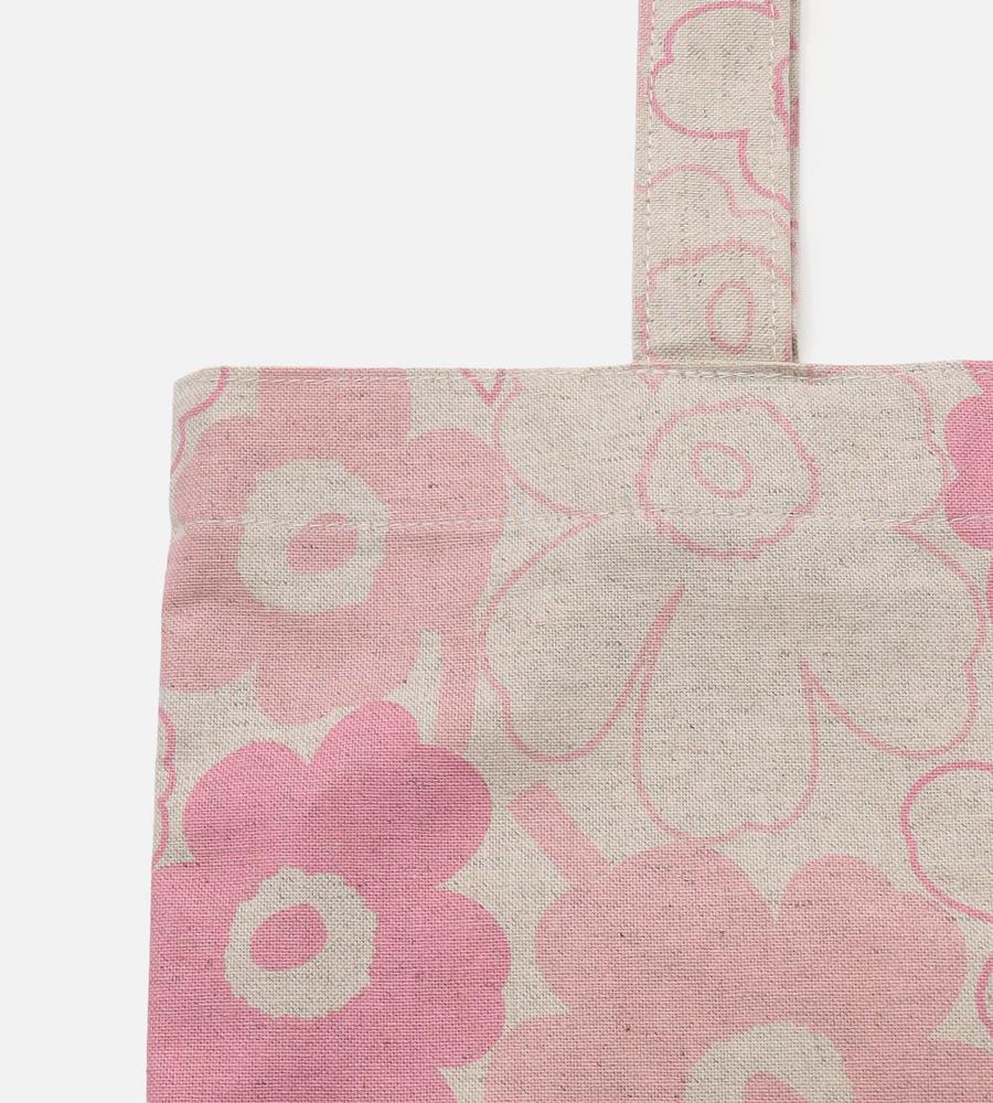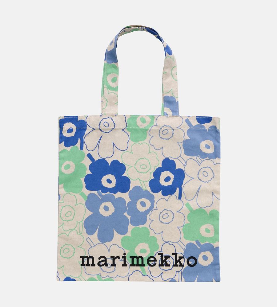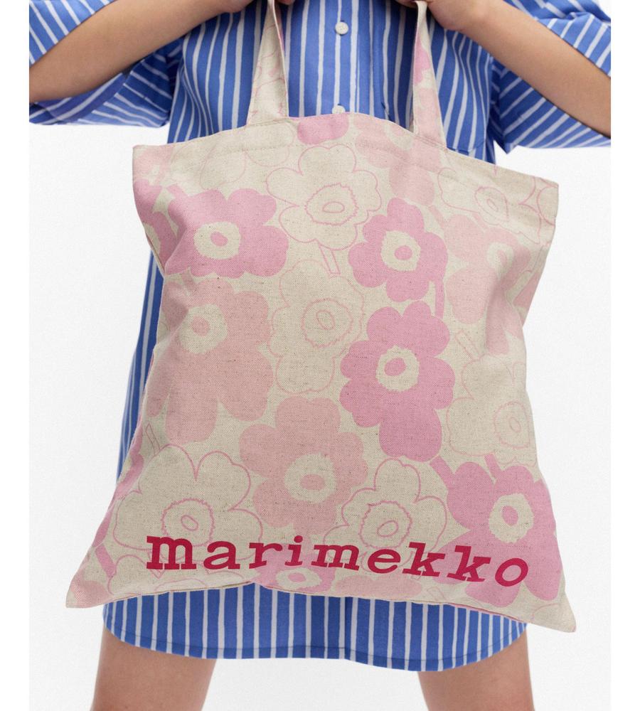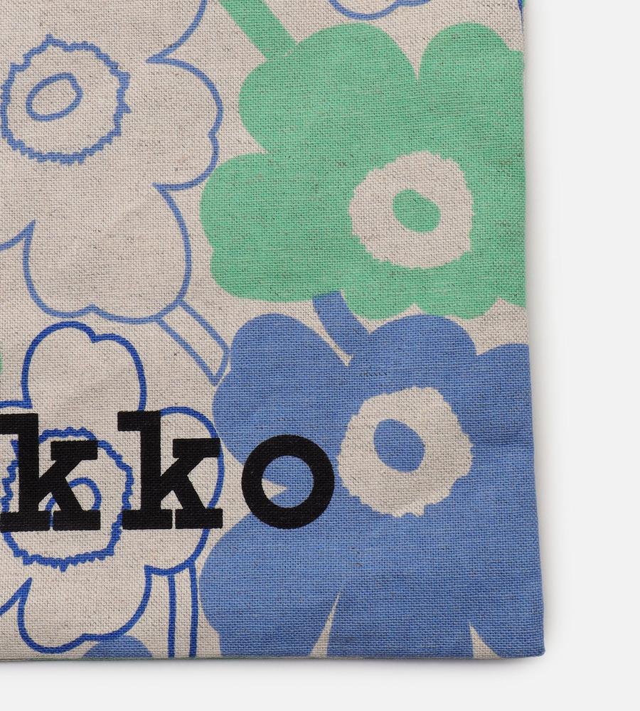 Unikko柄が全面にプリントされた華やかなデザインのトートバッグ。リネンとコットン混合のさらっとした手触りのナチュラルな生地感が特徴。大きくプリントされたロゴもスタイリッシュなデザインポイント。折りたたんだり携帯しやすく、メインバッグにはもちろんサイドバッグとしても活躍する便利なアイテムです。