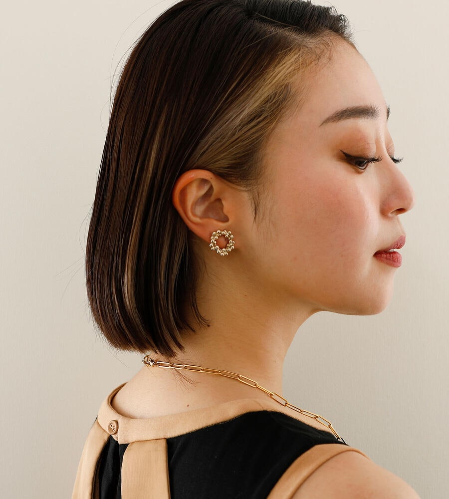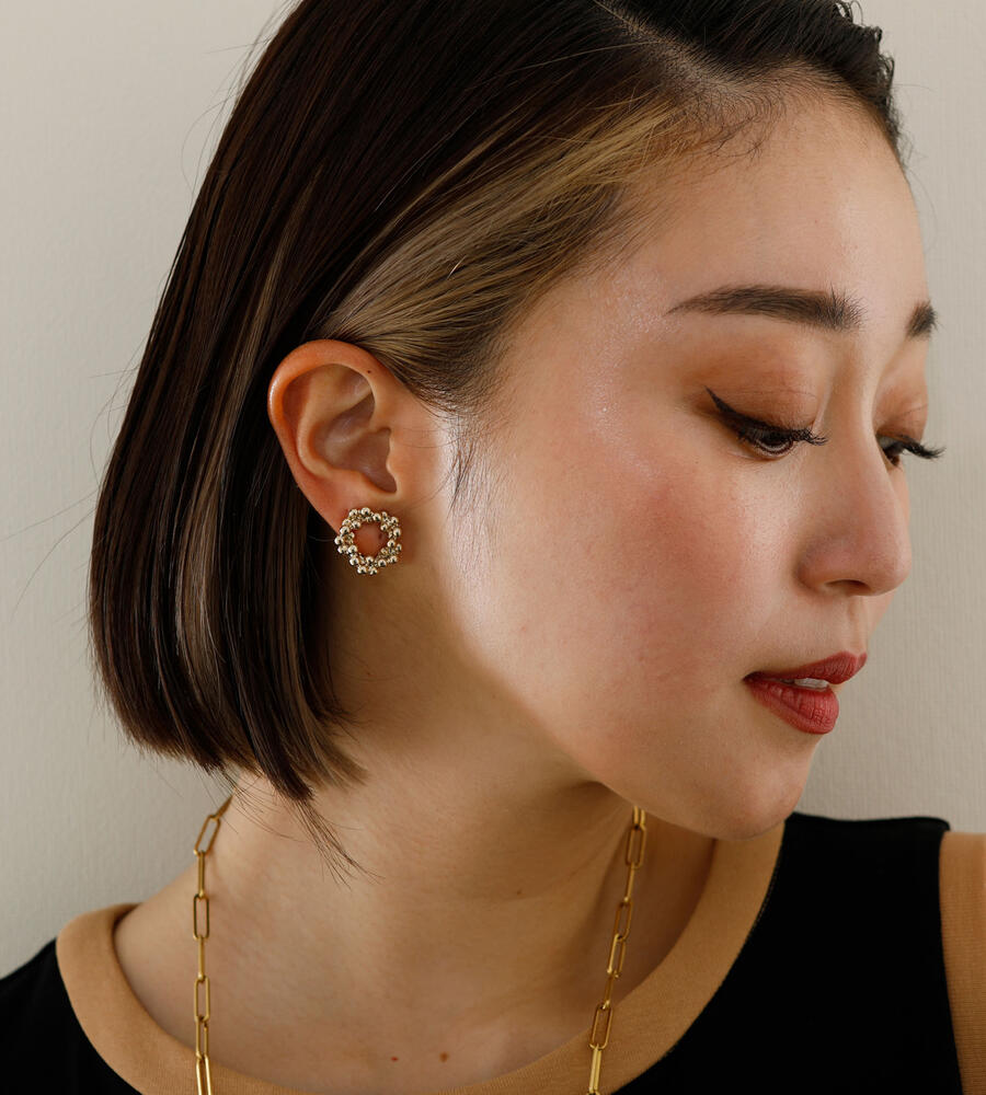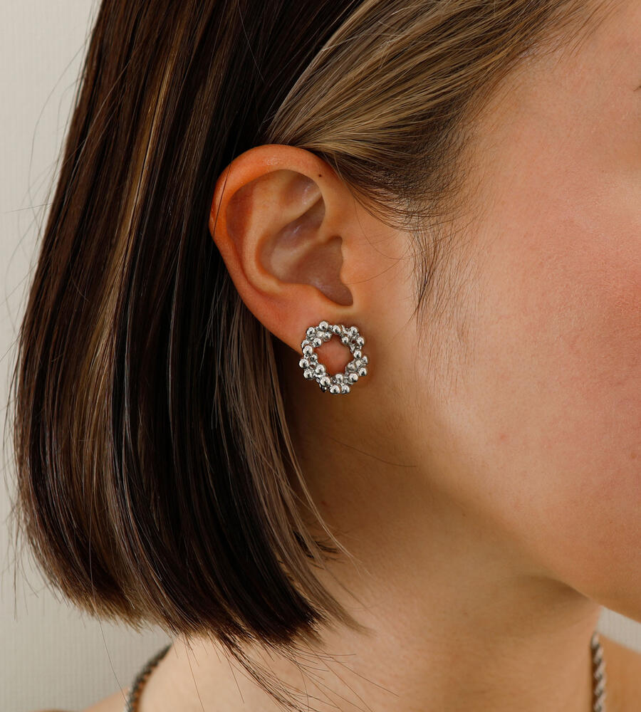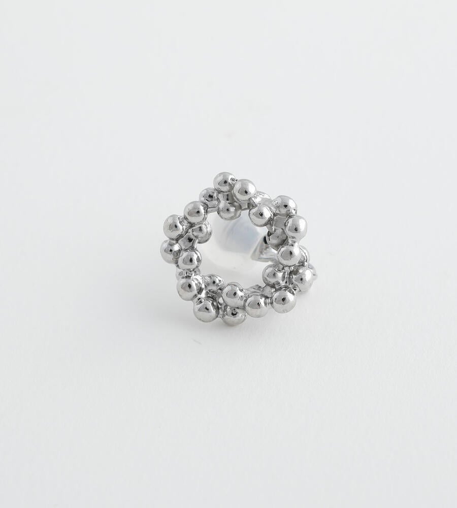 粒状のメタル素材で仕上げたリングモチーフのエアフィットイヤリング。シンプルながら、不揃いなシルエットがモードな雰囲気の一品です。大きすぎず小さすぎない、使い勝手のよいサイズ感もポイント。カジュアルからキレイめまで幅広い着こなしと相性がよく、コーディネートのブラッシュアップにおすすめです。