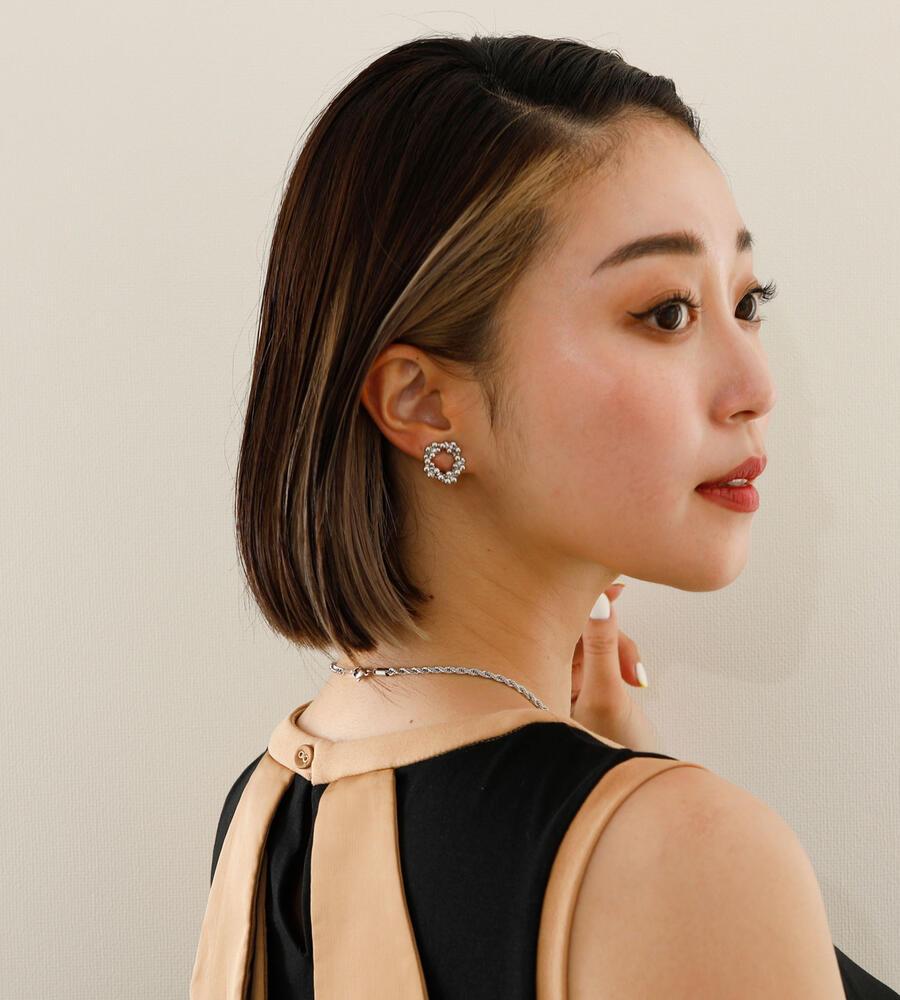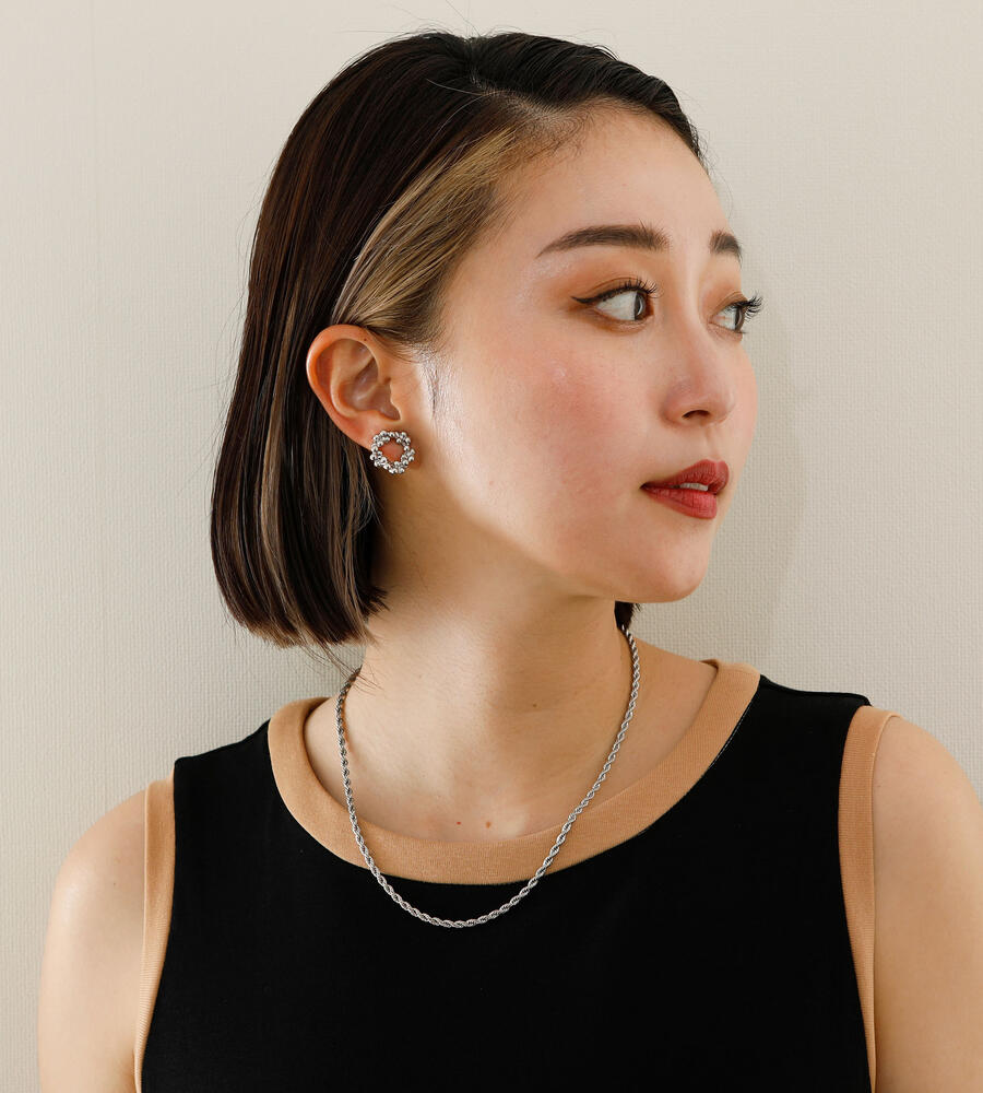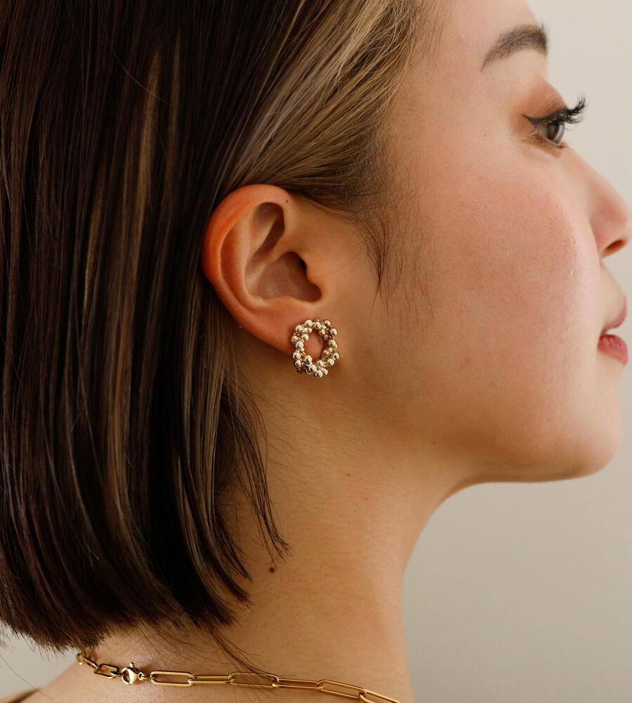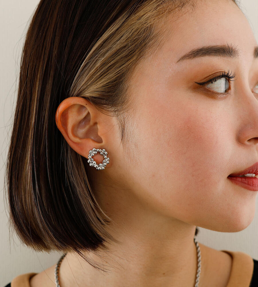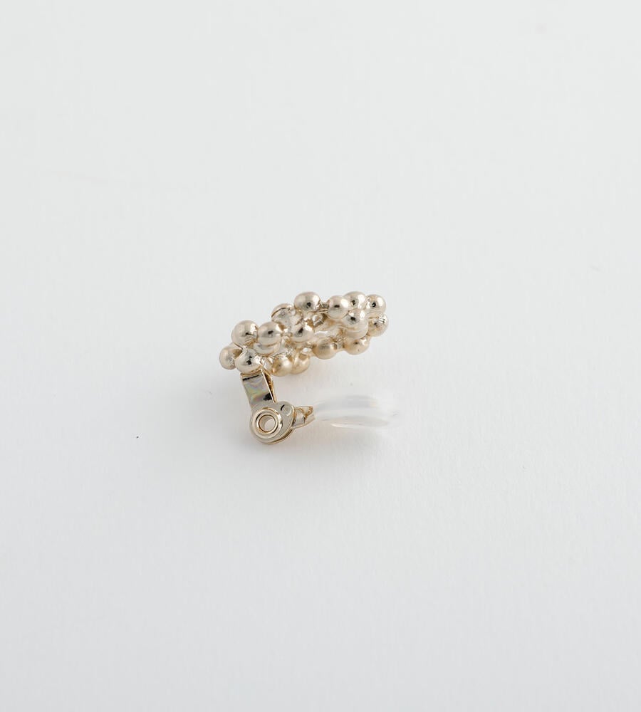 粒状のメタル素材で仕上げたリングモチーフのエアフィットイヤリング。シンプルながら、不揃いなシルエットがモードな雰囲気の一品です。大きすぎず小さすぎない、使い勝手のよいサイズ感もポイント。カジュアルからキレイめまで幅広い着こなしと相性がよく、コーディネートのブラッシュアップにおすすめです。