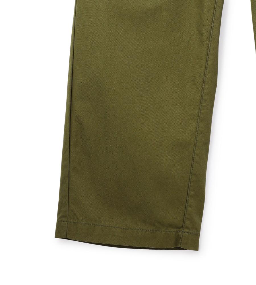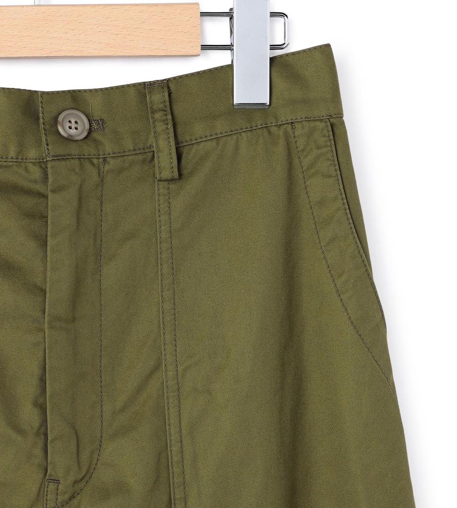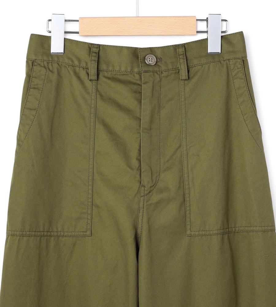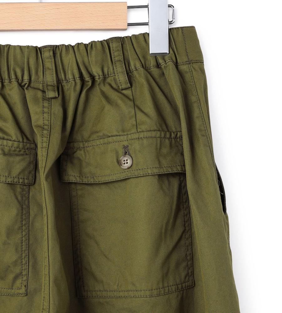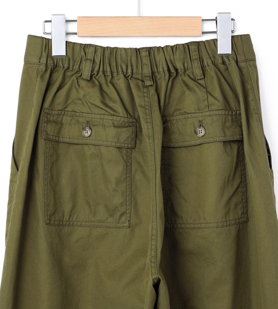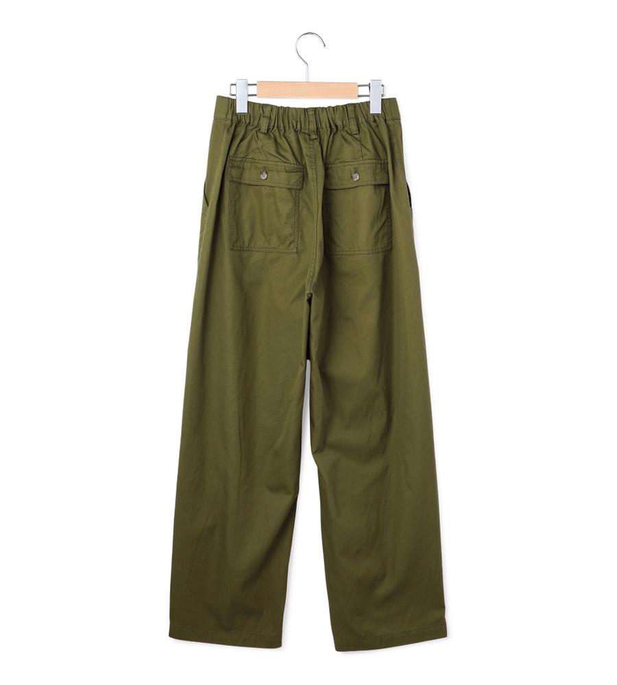 フロントの大きなパッチポケットとバックフラップポケットがデザインポイントのベイカーパンツ。着こなしやすい幅広めのストレートシルエット。ウエスト後ろ部分はゴム仕様で、履き心地快適なのもうれしいポイント。シンプルなデザインで着回ししやすく、毎日のコーディネートで活躍するアイテムです。