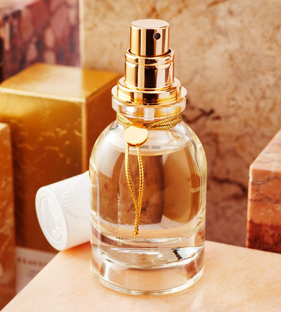 着想を得たデザインのボトルがゴールドのリボンで飾られ、ブランドのシグニチャーカラーであるゴールドに包まれた箱にはポルトガルで採掘される大理石の模様がエンボスで表現されています。