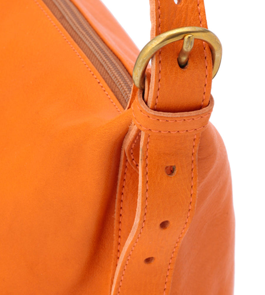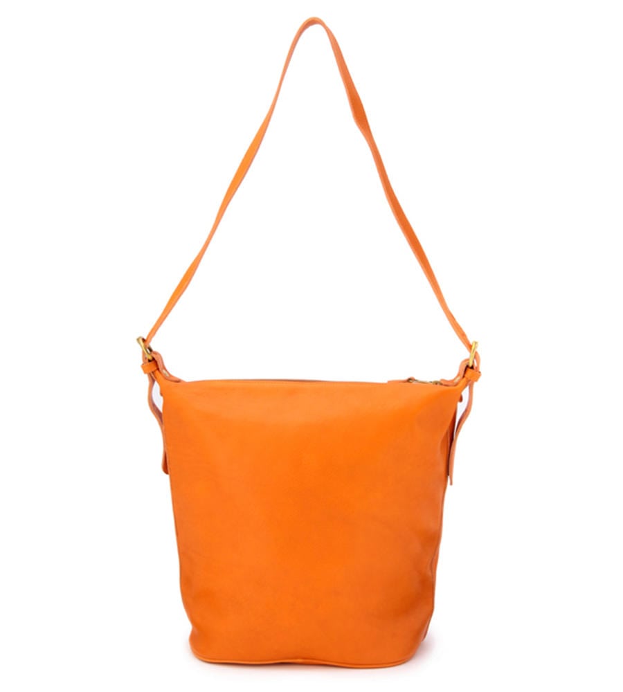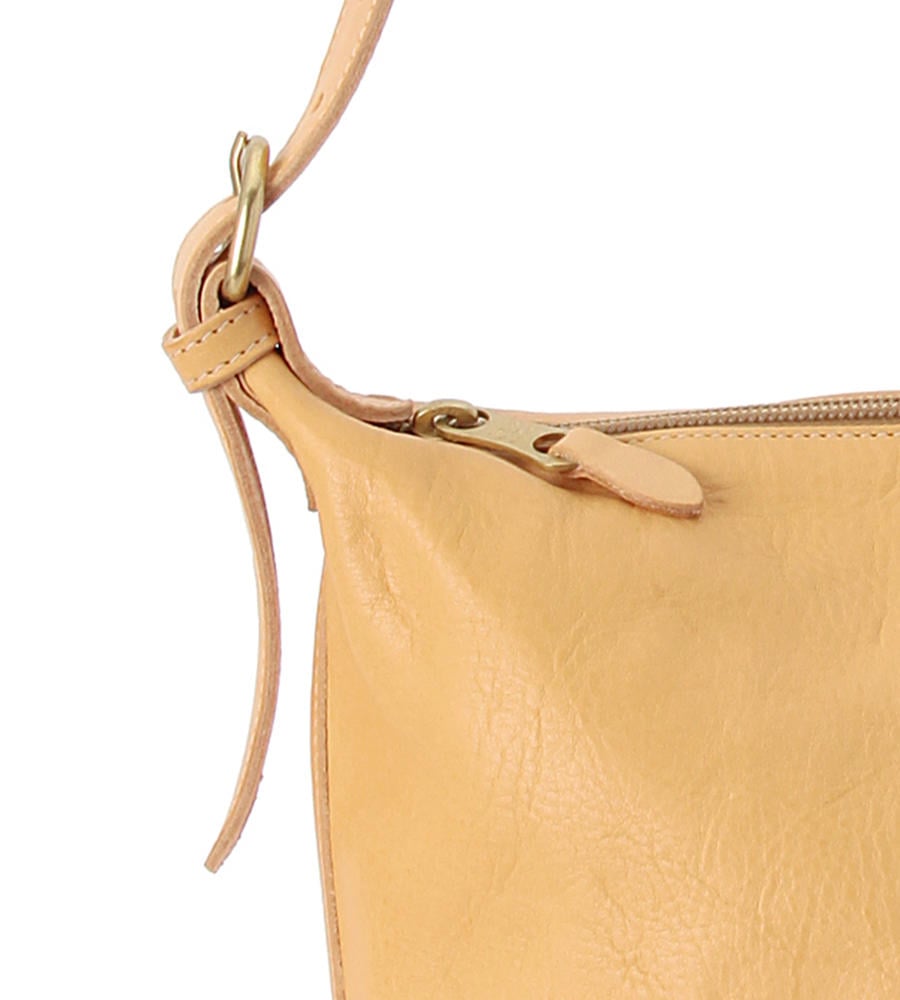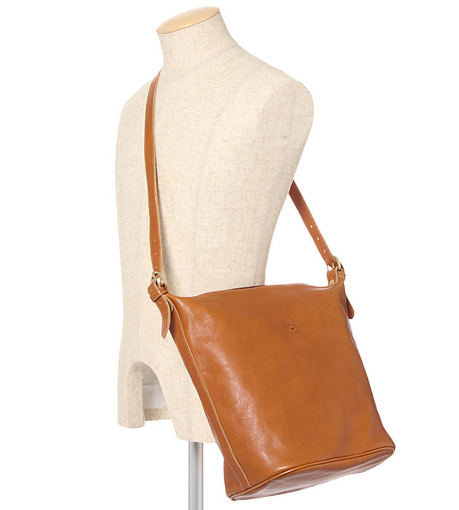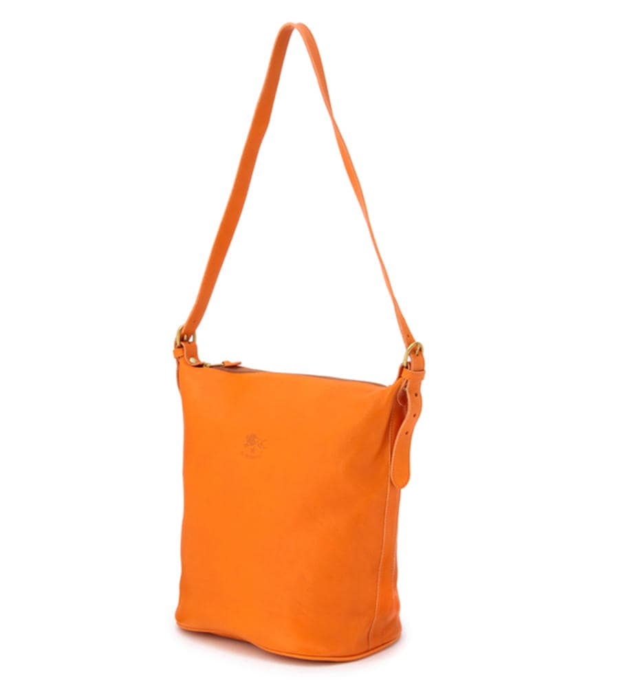 バケツ型の可愛いフォルムの定番ショルダーバッグ。オリジナルレザーの上質感を堪能できる、シンプルなデザインに仕上がっています。
