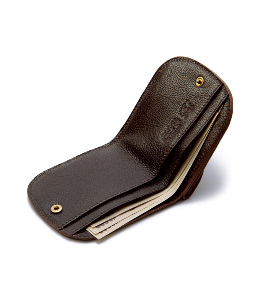 他の定番にはない丸いフォルムが特徴の2つ折り財布。内側には札入れ、外側には容量の大きいコインポケットが配置されており、シンプルで使い勝手の良いアイテムとなっています。