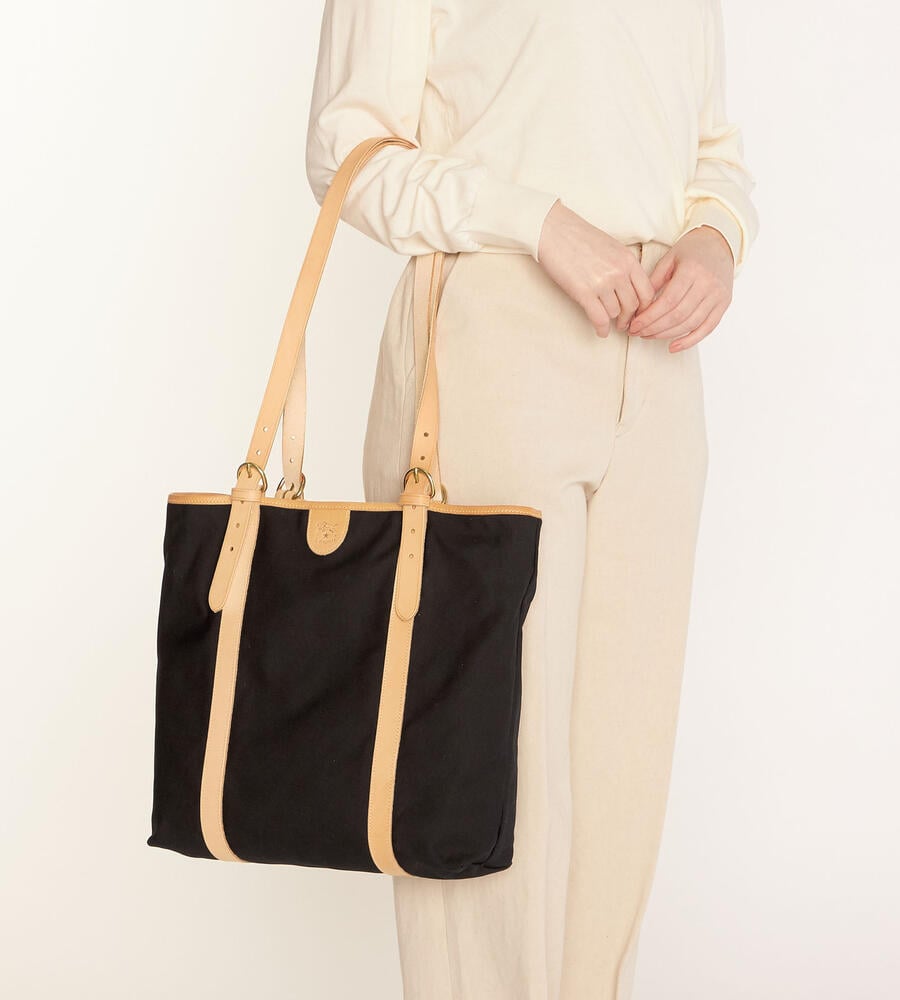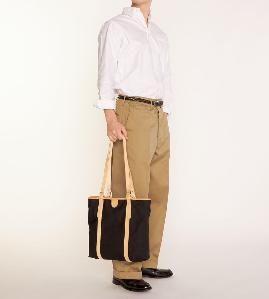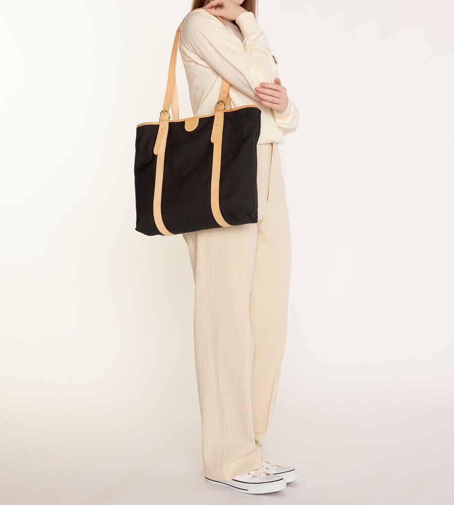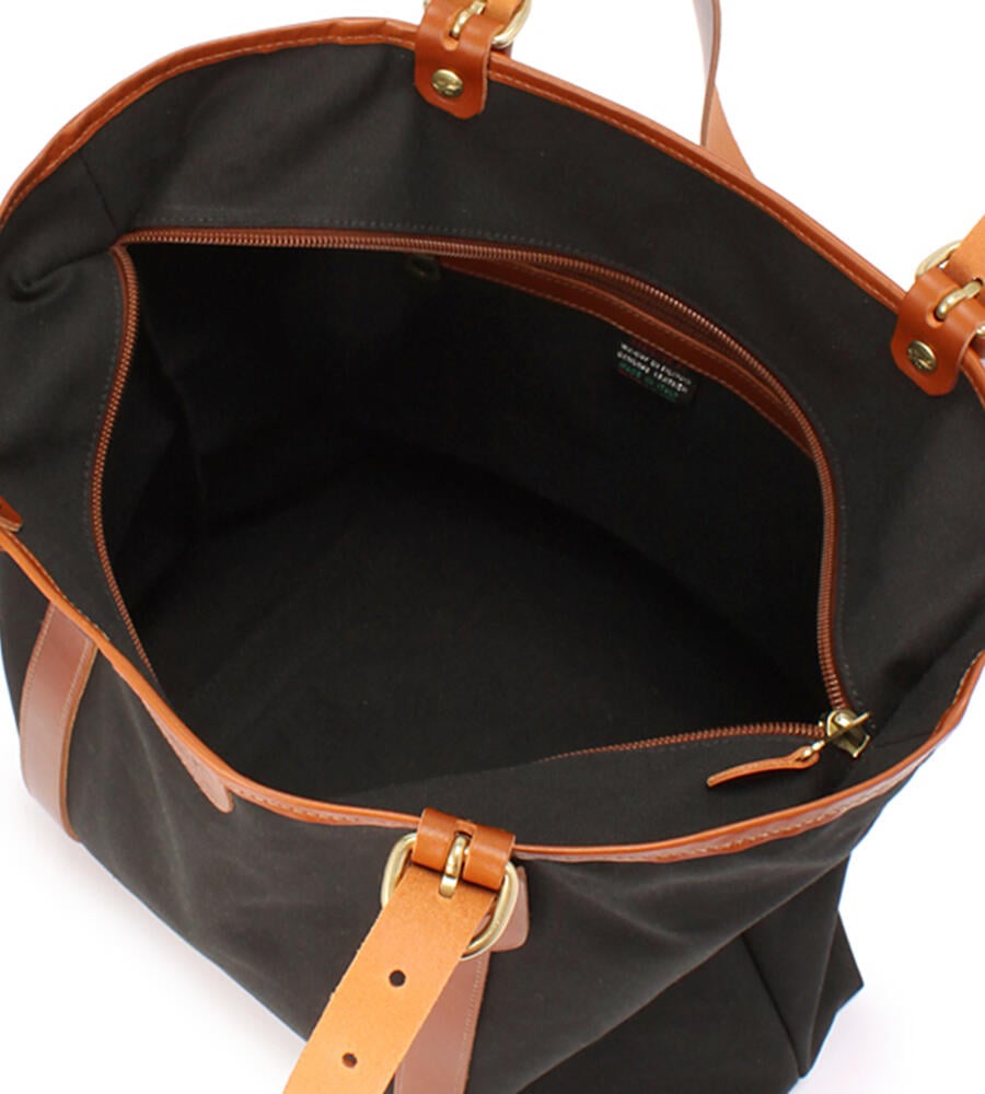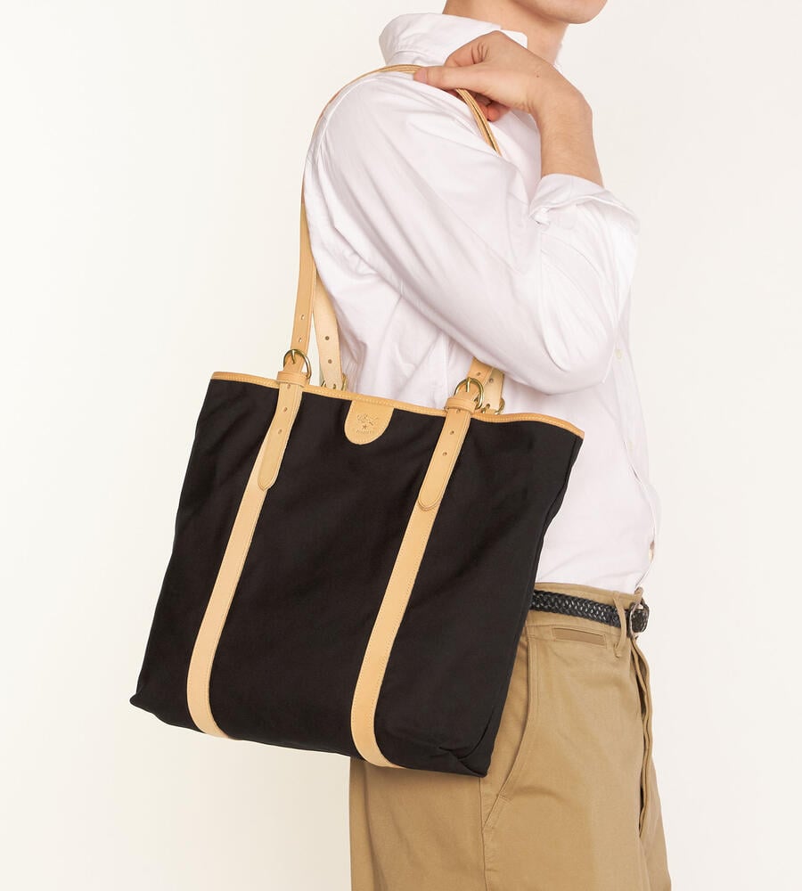 オリジナルキャンバスのシンプルなトートバッグ。ショルダーベルトは長さを調節でき、開口部はジップで開閉できるので、ビジネスシーンにも活躍するアイテムです。